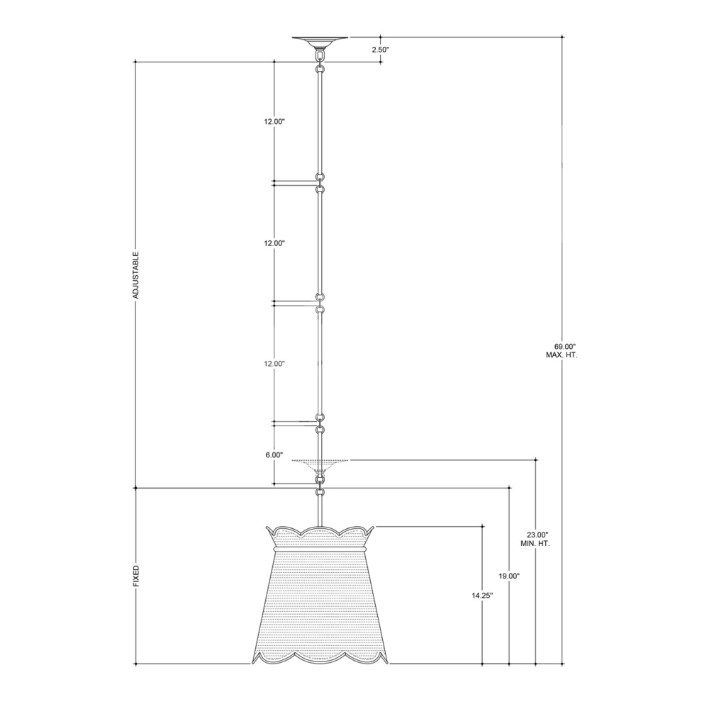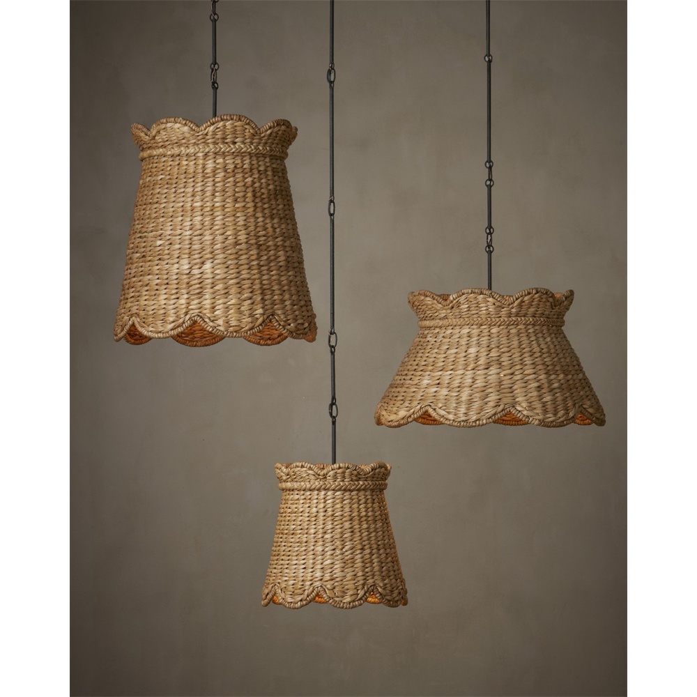 Suzanne Duin, who founded the Houston shop and design studio Maison Maison, conceived the Annabelle Small Pendant. Known for a keen eye in sourcing authentic French antiques and home accessories from around the globe, Suzanne created a line of woven light fixtures that are handmade by artisans in South Asia. The shade, made of water hyacinth, will bring both texture and French flair to a space, the braided edges fine treatments that reflect Parisian style. Infuse a breakfast nook with the lore of the city’s famous cafés with this woven pendant, which is au courant in a mix of natural and mole black finishes. Adjustable from 23" to 69" with use of included chain/rod kit/cable. If your space calls for a longer drop, additional chain/rods/cable is available for purchase.
