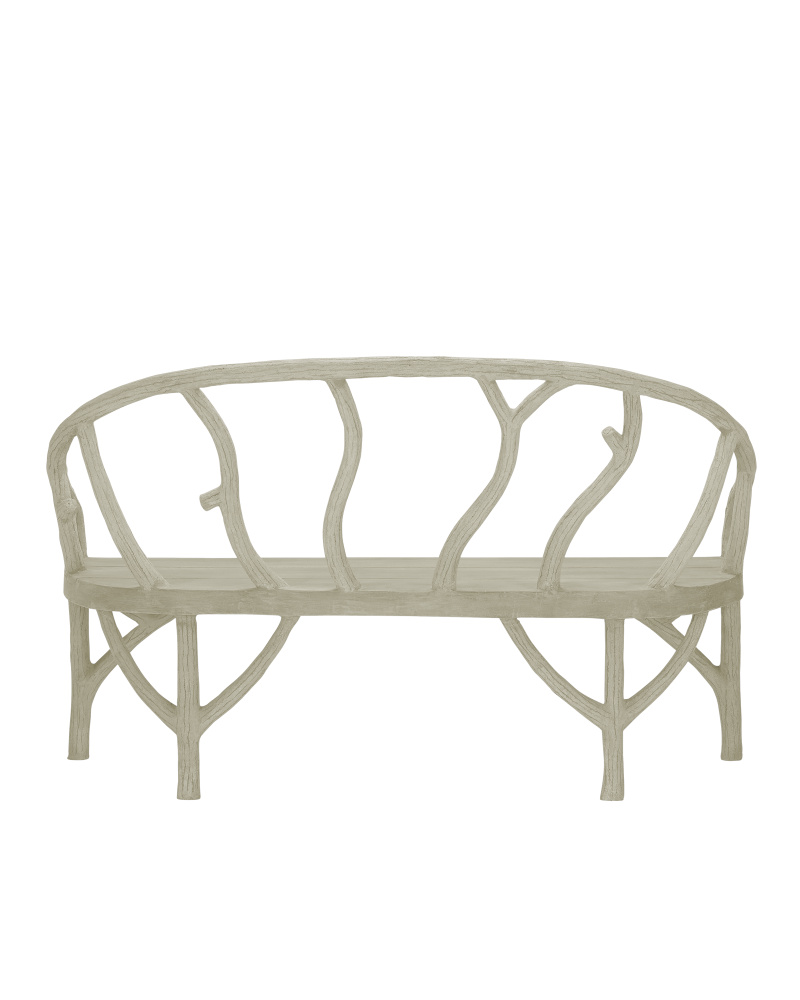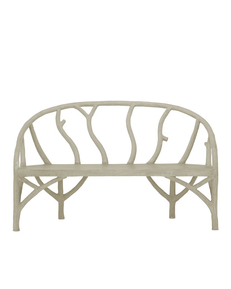 The sturdy Arbor Bench, which is just as durable in the garden as it is indoors, is made in the time-honored artistry of faux bois. The concrete bench has a steel frame covered with cement in the classic rustic style sculpted to look like tree branches. There are several pieces in the Arbor family of furnishings.