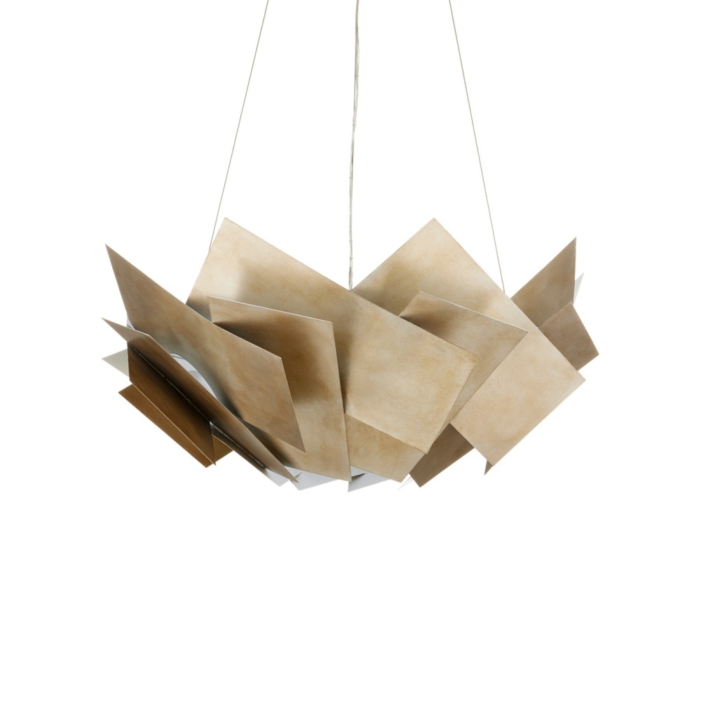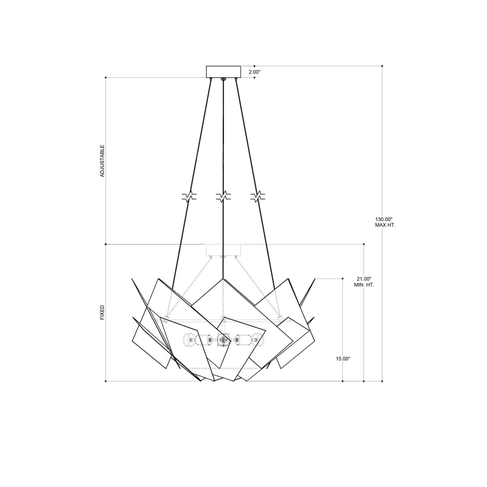 Our Artiste Chandelier is a powerful composition made of simple wrought iron-panels. It's how these sheets of metal, in a silver leaf finish, are arranged that bring it its edgy style. The bottom of the silver chandelier is fitted with an opaque acrylic diffuser that will soften the glow of the three-light fixture. Adjustable from 21" to 130" with use of included chain/rod kit/cable. If your space calls for a longer drop, additional chain/rods/cable is available for purchase.
