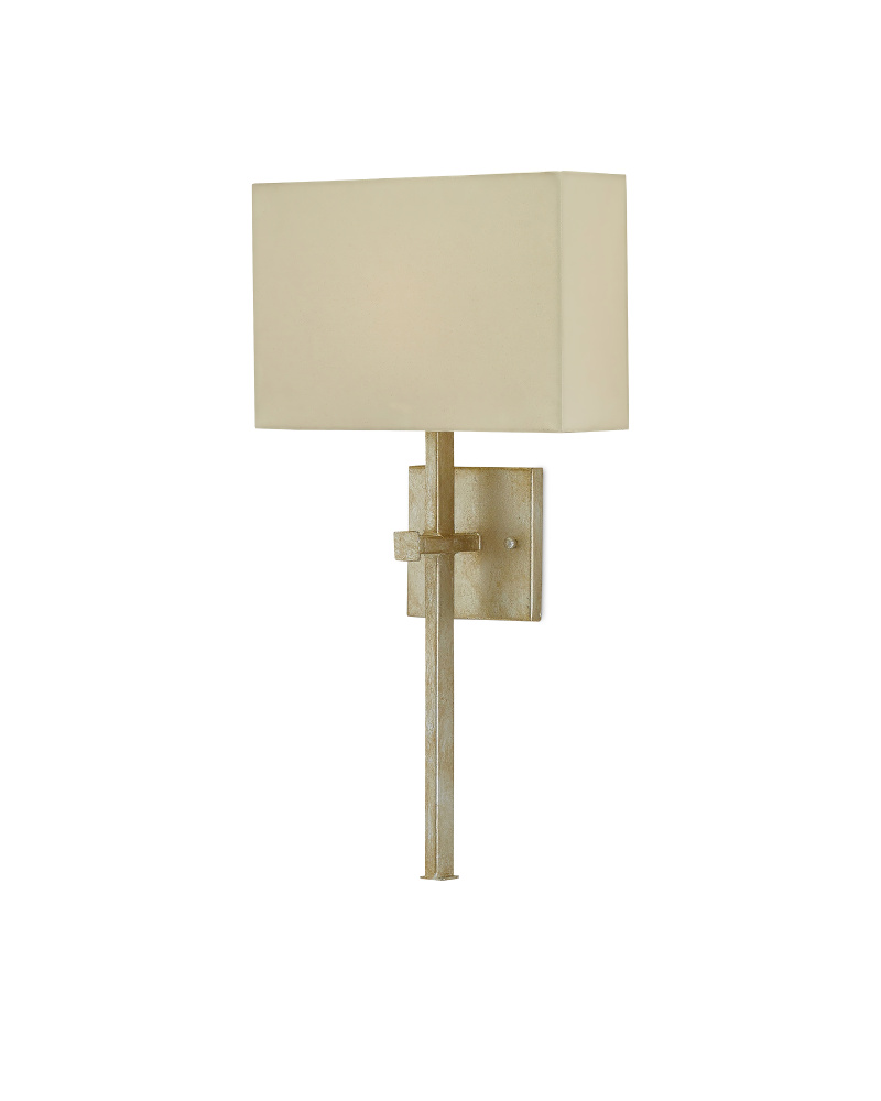 Another of our sconces that references vintage designs, our Ashdown Silver Wall Sconce has pared-down lines. The silver leaf finish is tonally in sync with the champagne silk shade. The sconce meets ADA requirements.