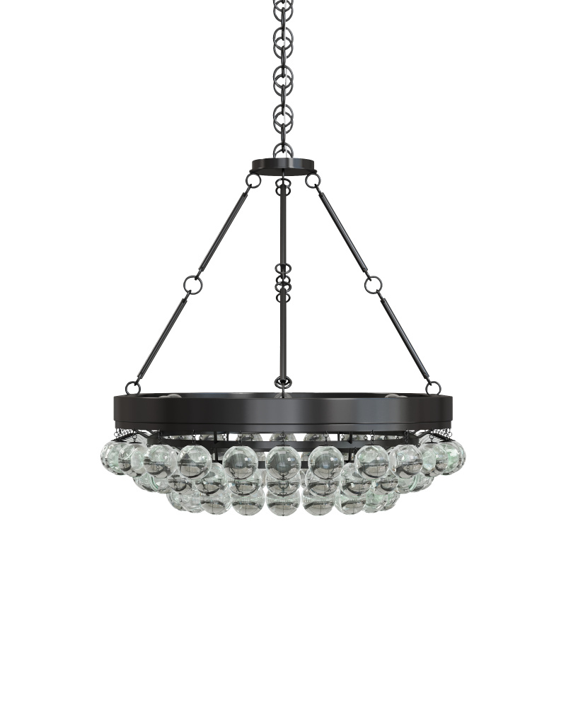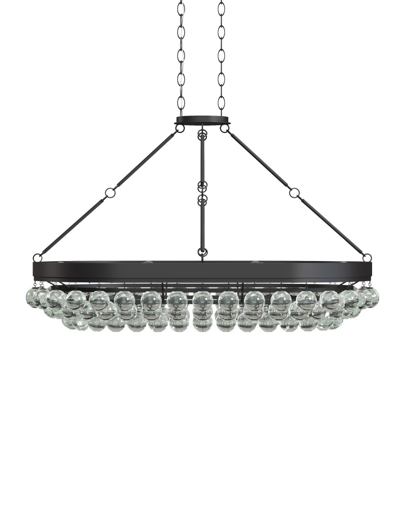 Blown glass spheres bubble beneath a robust wrought-iron oval to create a commanding profile in the Balthazar Oval Chandelier. It owes its handsomeness to its French black finish with its deep tones that contrast the glass elements on this black chandelier. Adjustable from 34" to 100" with use of included chain/rod kit/cable. If your space calls for a longer drop, additional chain/rods/cable is available for purchase.