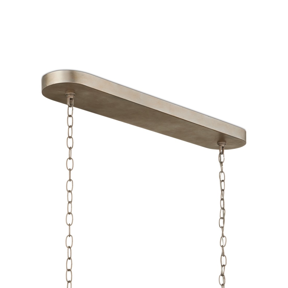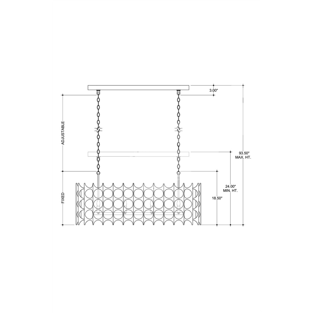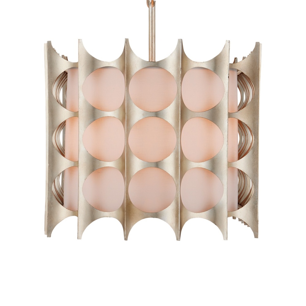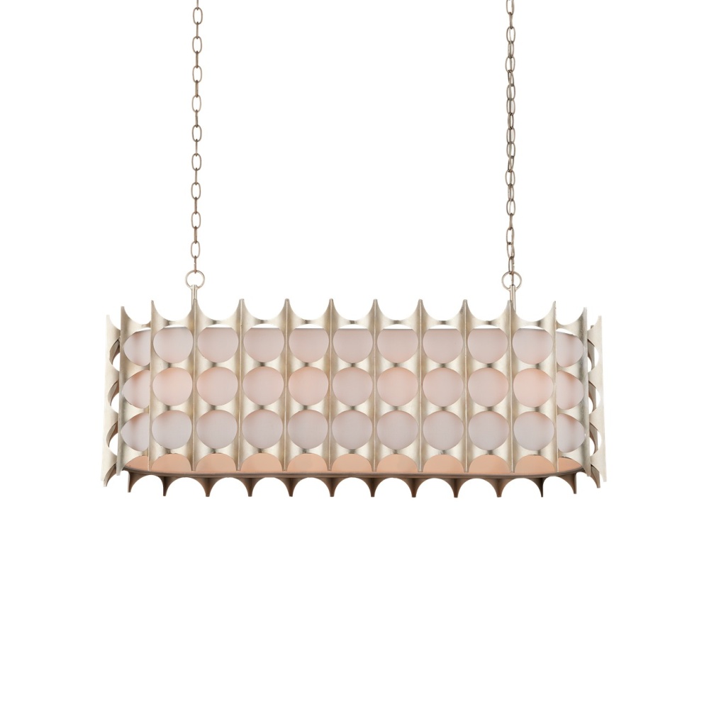 The Bardi Oval Chandelier is an engineered marvel. The laser-cut sheets of metal are bent and welded in place, then finished in a contemporary silver leaf that gleams. The dramatic construct is then fitted over a white linen shade that makes the illumination from the silver chandelier glow. Adjustable from 24" to 93.5" with use of included chain/rod kit/cable. If your space calls for a longer drop, additional chain/rods/cable is available for purchase.