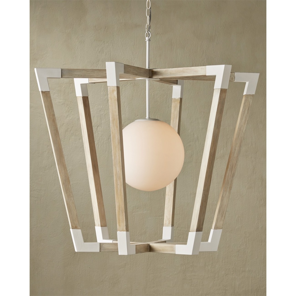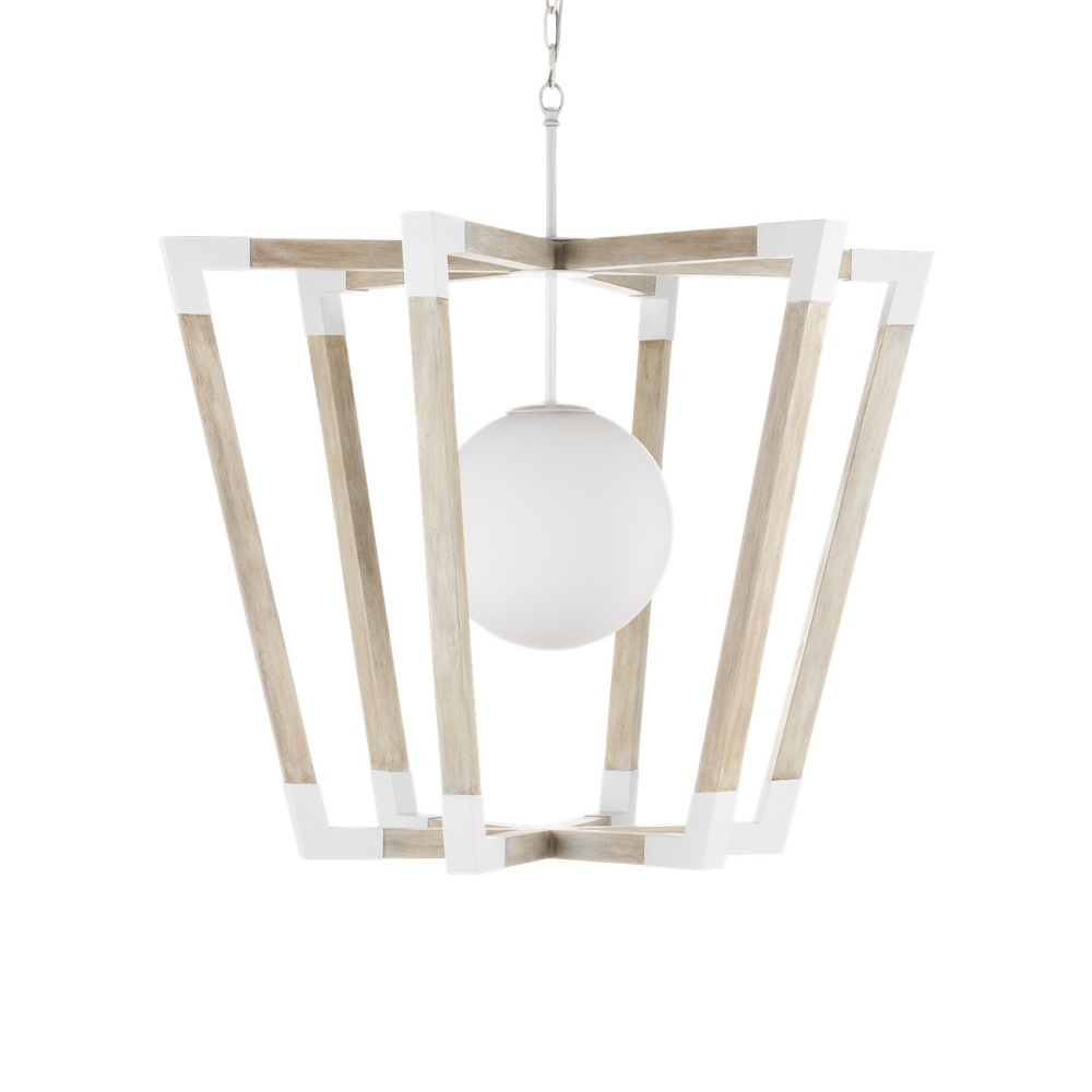 The Arts & Crafts movement inspired the design of the Bastian Globe Pendant, made of wood in a sandstone finish, accented by wrought iron in sugar white finish. The crisp feel of the white metal clasping the spokes of wood brings extra sophistication to this tan and white pendant light. There are a number of designs in this family of fixtures. Adjustable from 48.5" to 84.25" with use of included chain/rod kit/cable. If your space calls for a longer drop, additional chain/rods/cable is available for purchase.