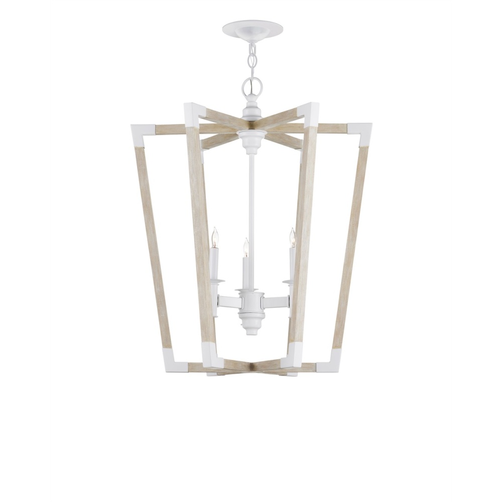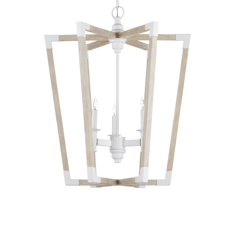 The Arts & Crafts movement inspired the design of the Bastian Medium Sandstone Lantern, which is made of wrought iron and wood in sugar white and sandstone finishes. The crisp feel of the white metal clasping the spokes of washed wood brings extra sophistication to this lantern-shaped chandelier. Adjustable from 35.5" to 103.5" with use of included chain/rod kit/cable. If your space calls for a longer drop, additional chain/rods/cable is available for purchase.