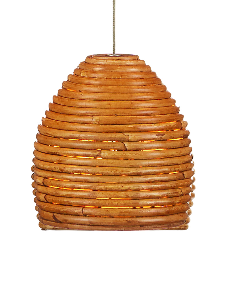 The Beehive 1-Light Multi-Drop Pendant has a rattan bell-shaped shade. Because the natural material is not perfectly uniform, there are fissures in the shade that allow illumination to escape to create a warm glow. The canopy of this piece is luminous in a painted silver finish. This fixture is among Currey & Company's multi-drop pendant collection, which includes multiple configurations.