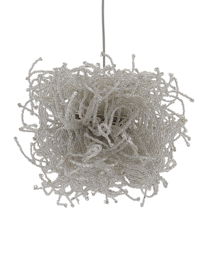 The Birds Nest 3-Light Multi-Drop Pendant is an effervescent beaded pendant that looks like luminous nests. Rather than twigs, the shades are made up of whorls of clear beads strung along pieces of wire. It takes many hours for our artisans to create these shades that look so whimsical. The canopy of this piece is luminous in a painted silver finish. This fixture is among Currey & Company's multi-drop pendant collection, which includes multiple configurations.