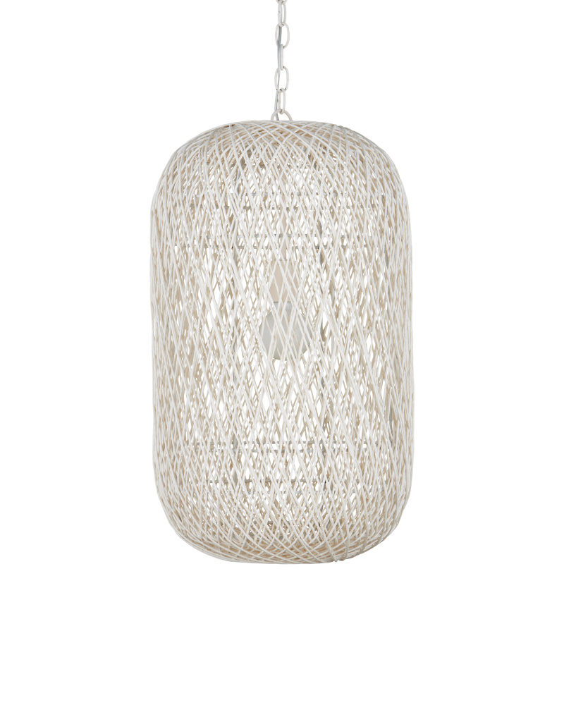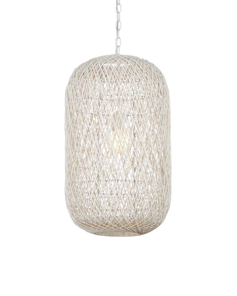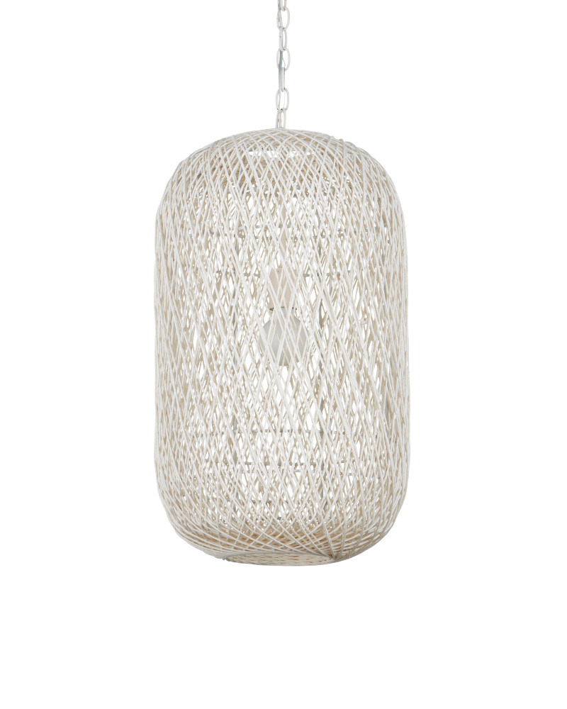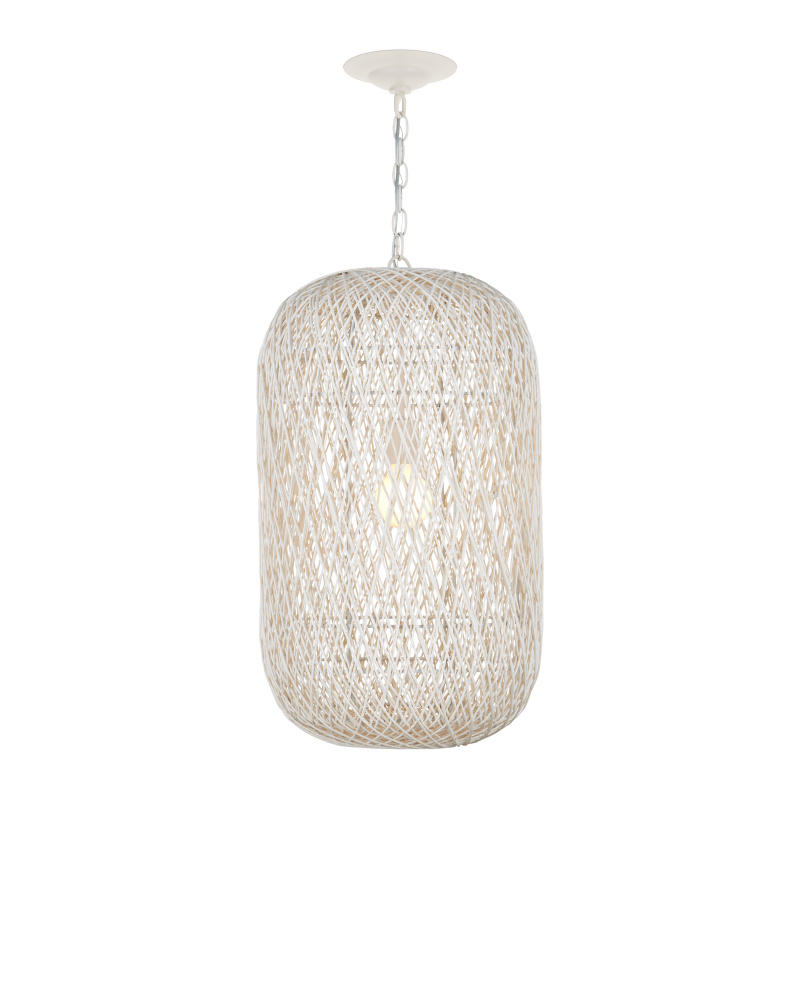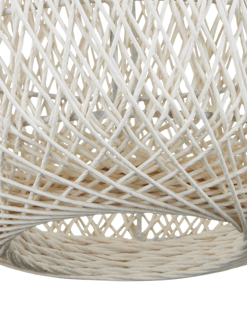 The Cocoon Medium Pendant was inspired by a butterfly in chrysalis, but it is meant for grander-scaled duties as a light fixture. The white pendant has a wrought iron frame covered in a vanilla finish that is beautifully wrapped in Kraft paper twine in a cream finish. The skill and patience required to create such an even flow of string makes this an artisanal piece. Adjustable from 36" to 106.5" with use of included chain/rod kit/cable. If your space calls for a longer drop, additional chain/rods/cable is available for purchase.