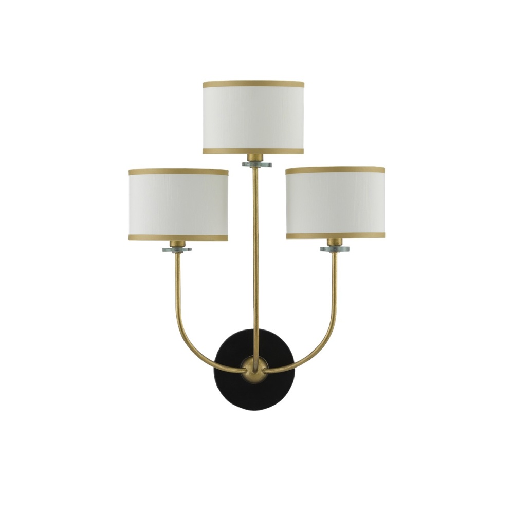 The Croydon Wall Sconce is an elegant design inspired by the waterlily. The arms represent the flower's submerged stems, while the shades mimic the shape and color of the blooms. The bobeches, in contrast, reflect the color of water. Crafted from wrought iron with brass and satin black finishes, this gold wall sconce combines simplicity with a story rich in natural inspiration.