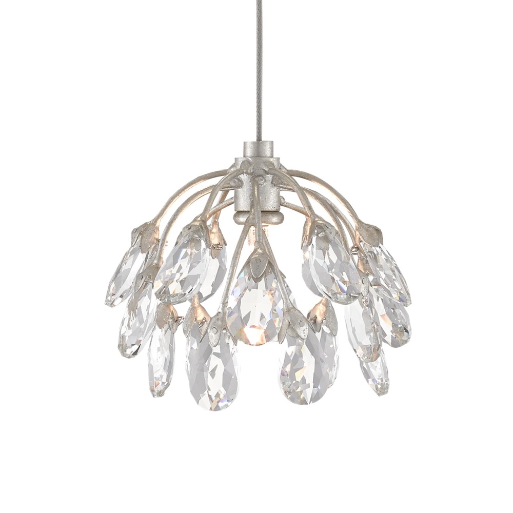 The Crystal Bud 3-Light Multi-Drop Pendant dangles flowers made of delicate faceted crystals from its canopy to make the shades effervescent and graceful. The canopy of this piece is luminous in a painted silver finish. This fixture is among Currey & Company's multi-drop pendant collection, which includes multiple configurations.