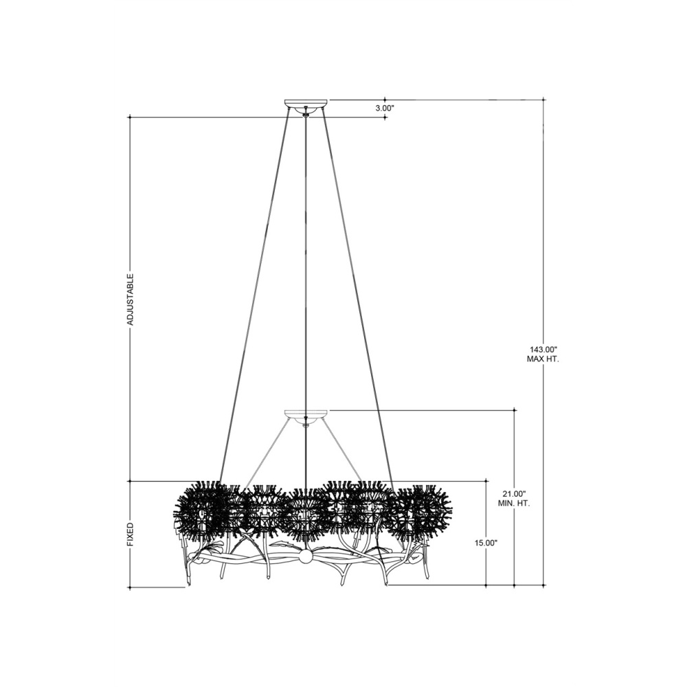 The Dandelion Silver & Gold Chandelier is a masterful composition that celebrates its namesake flower. The puff-balls that surround the bulbs are made of nails that are bent and welded together, a process that is extremely labor intensive. Made of wrought iron, the chandelier's undulant rings, orb accents, and leaves are in a contemporary gold leaf finish, while the floral elements are in a mix of contemporary silver leaf and contemporary silver finishes. This special piece expressively celebrates nature. Adjustable from 21" to 143" with use of included chain/rod kit/cable. If your space calls for a longer drop, additional chain/rods/cable is available for purchase.