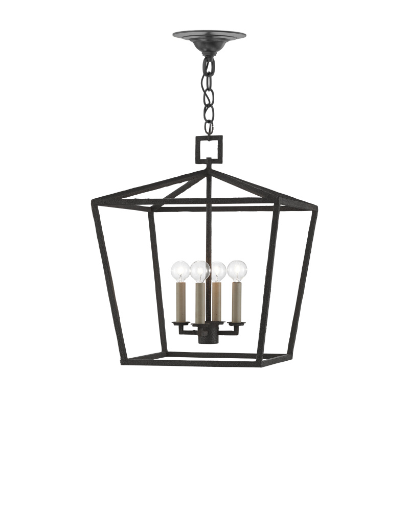 The Denison Black Medium Lantern is a hammered wrought-iron fixture in a Mole black finish. The classic lantern shape has stood the test of time to make it one of our most popular offerings. A design element of note is the square that fastens the lantern to the chain. Adjustable from 28.5" to 94" with use of included chain/rod kit/cable. If your space calls for a longer drop, additional chain/rods/cable is available for purchase.