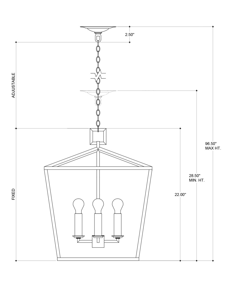 The Denison Gold Medium Lantern is a hammered wrought-iron fixture in a contemporary gold leaf finish. The classic lantern shape has stood the test of time to make it one of our most popular offerings. A design element of note is the square that fastens the lantern to the chain. Adjustable from 26.5" to 94" with use of included chain/rod kit/cable. If your space calls for a longer drop, additional chain/rods/cable is available for purchase.