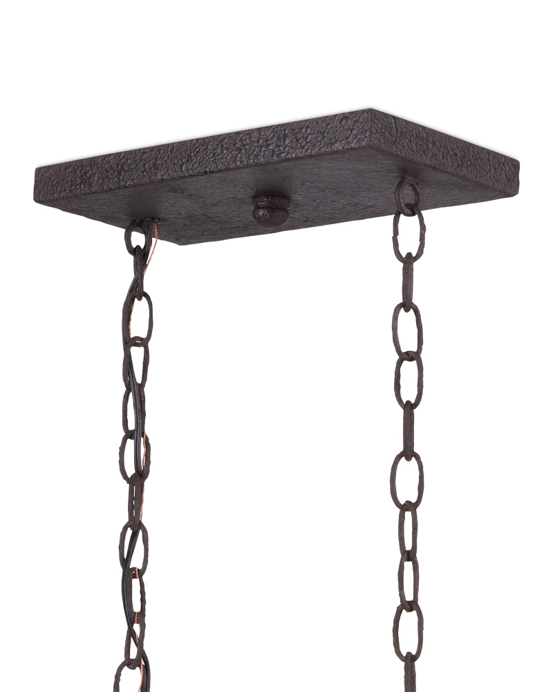 The Denison Rattan Rectangular Lantern is a hammered wrought-iron fixture in a Mole black finish that is wrapped in rattan. The classic lantern shape has stood the test of time to make it one of our most popular offerings. A design element of note is the square that fastens the lantern to the chain. Adjustable from 36" to 107" with use of included chain/rod kit/cable. If your space calls for a longer drop, additional chain/rods/cable is available for purchase.