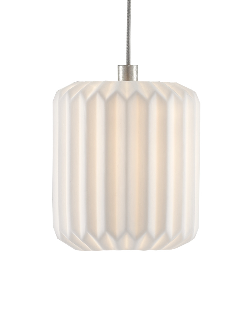 The Dove 1-Light Multi-Drop Pendant has a pleated shade made of pale ceramic that diffuses the light wafting through it. The indentions and ridges on the shade of the white pendant bring a textural feel to this luminary even though it is monochromatic. The canopy of this piece is luminous in a painted silver finish. This fixture is among Currey & Company's multi-drop pendant collection, which includes multiple configurations.