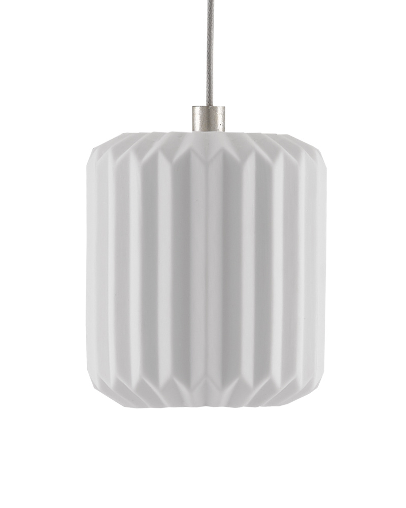 The Dove 3-Light Multi-Drop Pendant has pleated shades made of pale ceramic that diffuse the light wafting through them. The indentions and ridges on the shades of the white pendant bring a textural feel to this luminary even though it is monochromatic. The canopy of this piece is luminous in a painted silver finish. This fixture is among Currey & Company's multi-drop pendant collection, which includes multiple configurations.