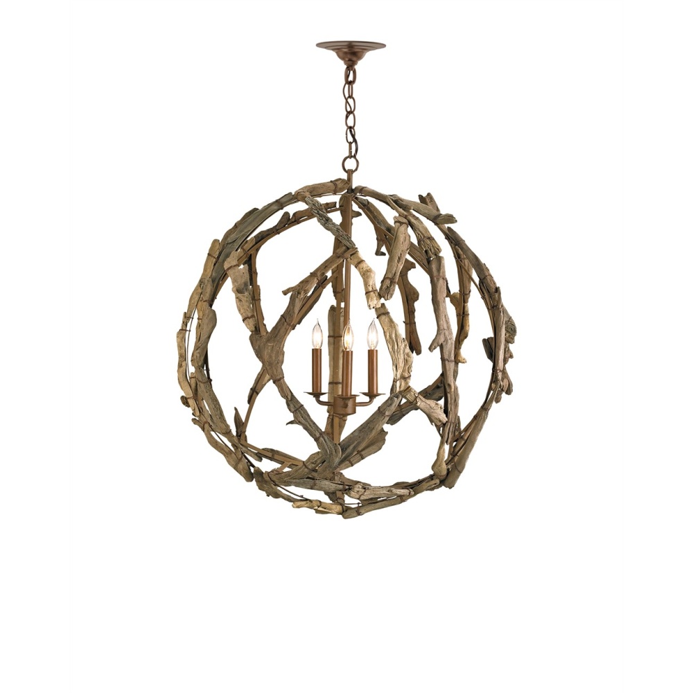 Showcasing the humble virtue of the natural world and an ardent devotion to workmanship, the Driftwood Orb Chandelier is meticulously constructed by wiring hand-selected pieces of natural driftwood to an iron frame. As in nature, no two of these three-light chandeliers are alike. Bring the ocean indoors with these elemental globes, a perfect accent piece to enliven a coastal cottage or a seaside condo.