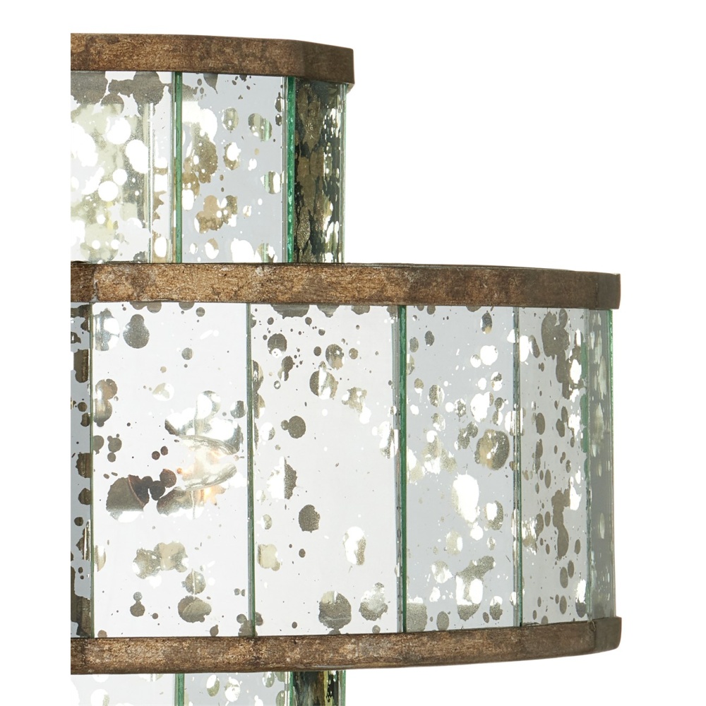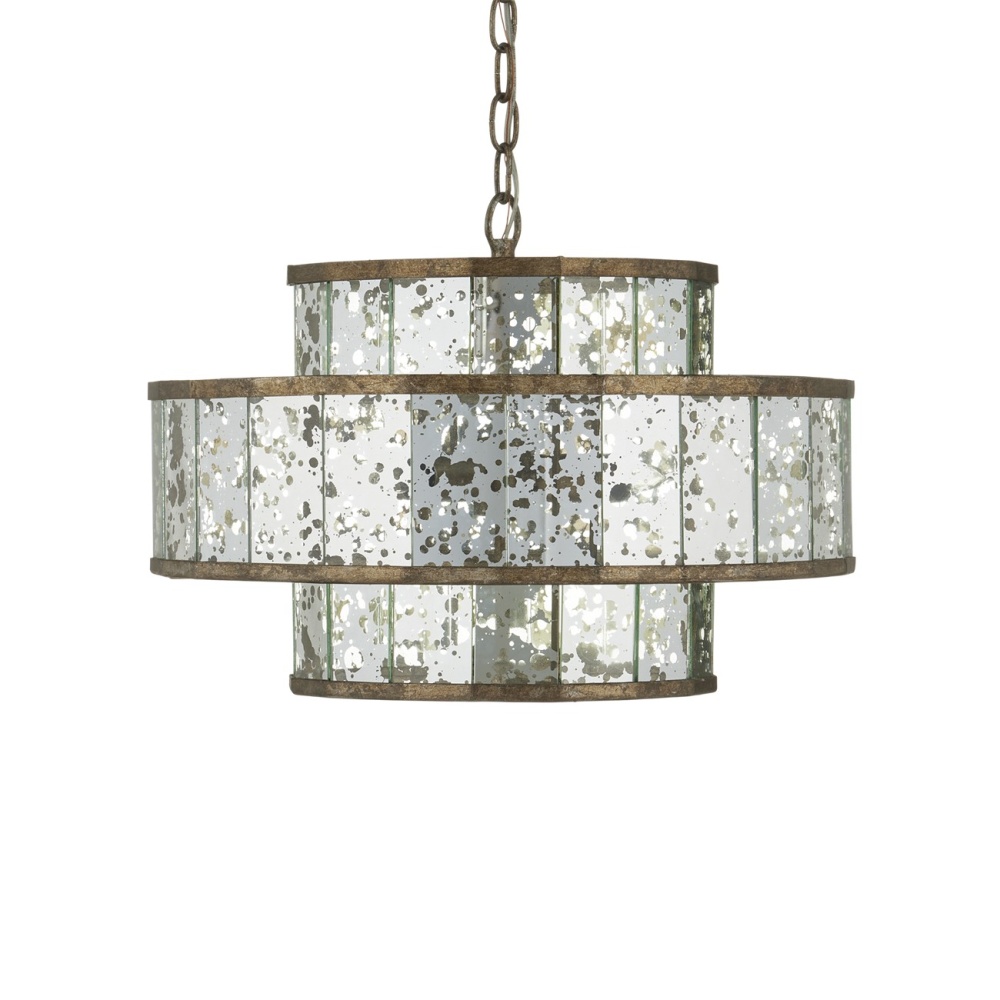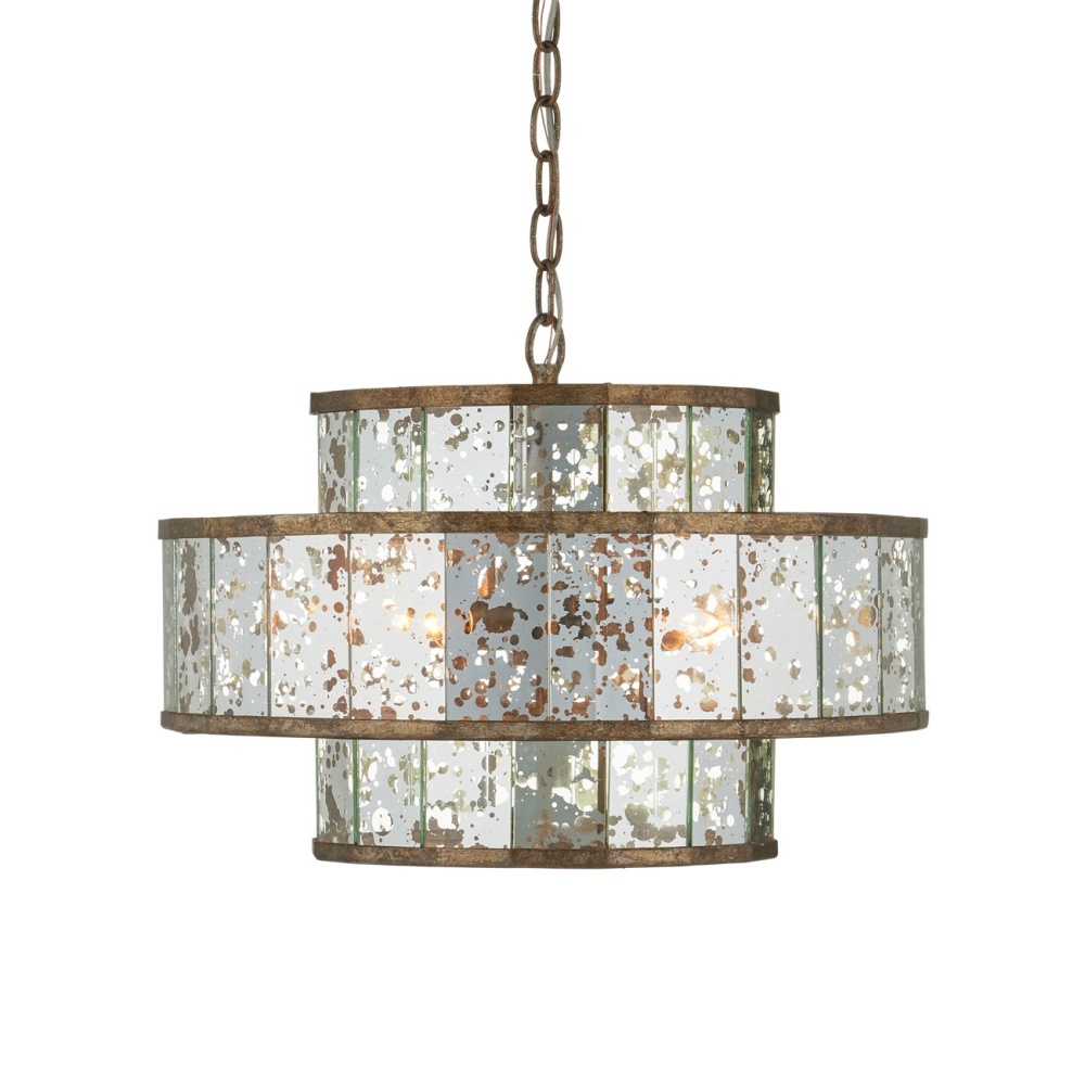 The Fantine Small Chandelier has shades made of Raj mirror that strikingly resemble mercury glass. The Pyrite bronze finish on the metal of this mirrored chandelier echoes the mottled tones in the glass to create synchronicity. The Fantine is also available in a large chandelier and a wall sconce. Adjustable from 20" to 87" with use of included chain/rod kit/cable. If your space calls for a longer drop, additional chain/rods/cable is available for purchase.