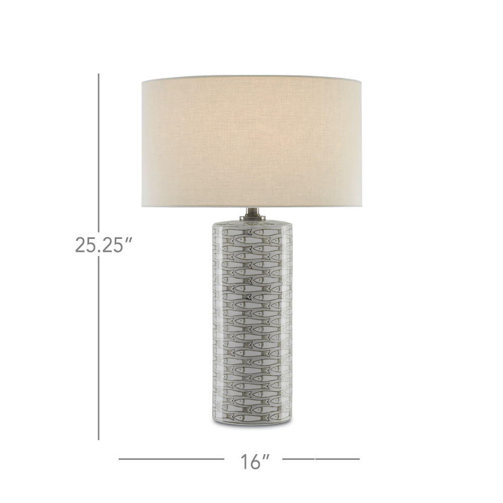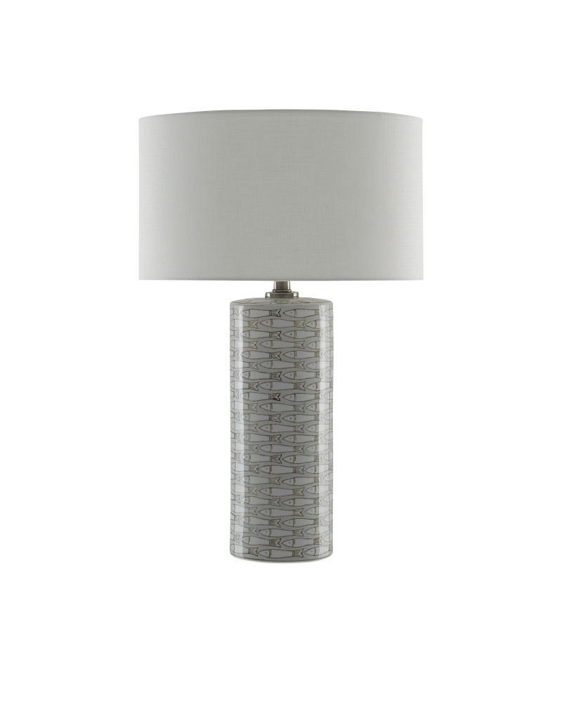 When you realize there is something fishy about the Fisch Table Lamp, you’ll recognized it as a bonus for the space begging for a hint of whimsy. The fish pattern on the clean-lined porcelain column is achieved in gray and white, the antique nickel finish on the hardware echoing the tones in the glazing. We’ve topped it off with an off-white linen shade to make this a swimmingly good choice for a beachfront condo or lakeside retreat.