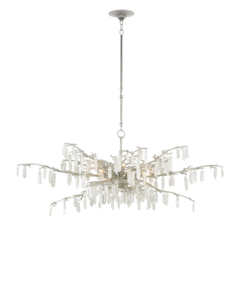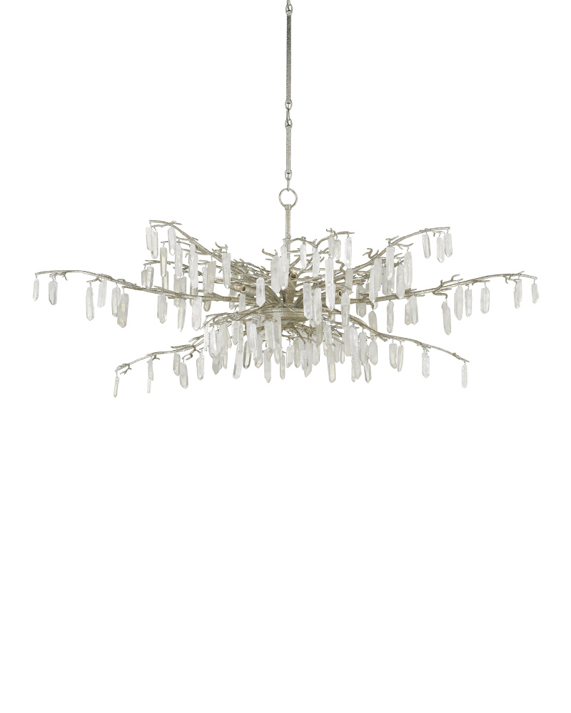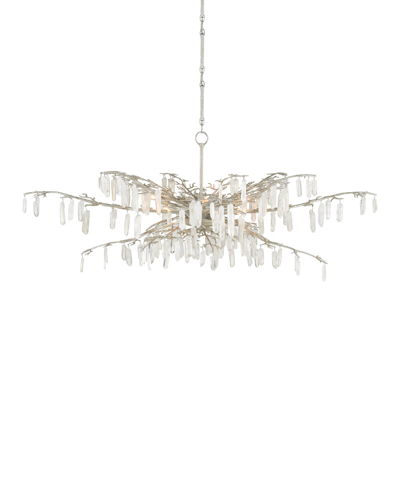The Forest Dawn Silver Chandelier is a truly exceptional work of art dripping with natural crystals. The beautiful textured silver finish is a perfect complement to the quartz, the combination lending this silver chandelier a formal look. This crystal chandelier is in the Aviva Stanoff Collection. Adjustable from 35.5" to 71.5" with use of included chain/rod kit/cable. If your space calls for a longer drop, additional chain/rods/cable is available for purchase.