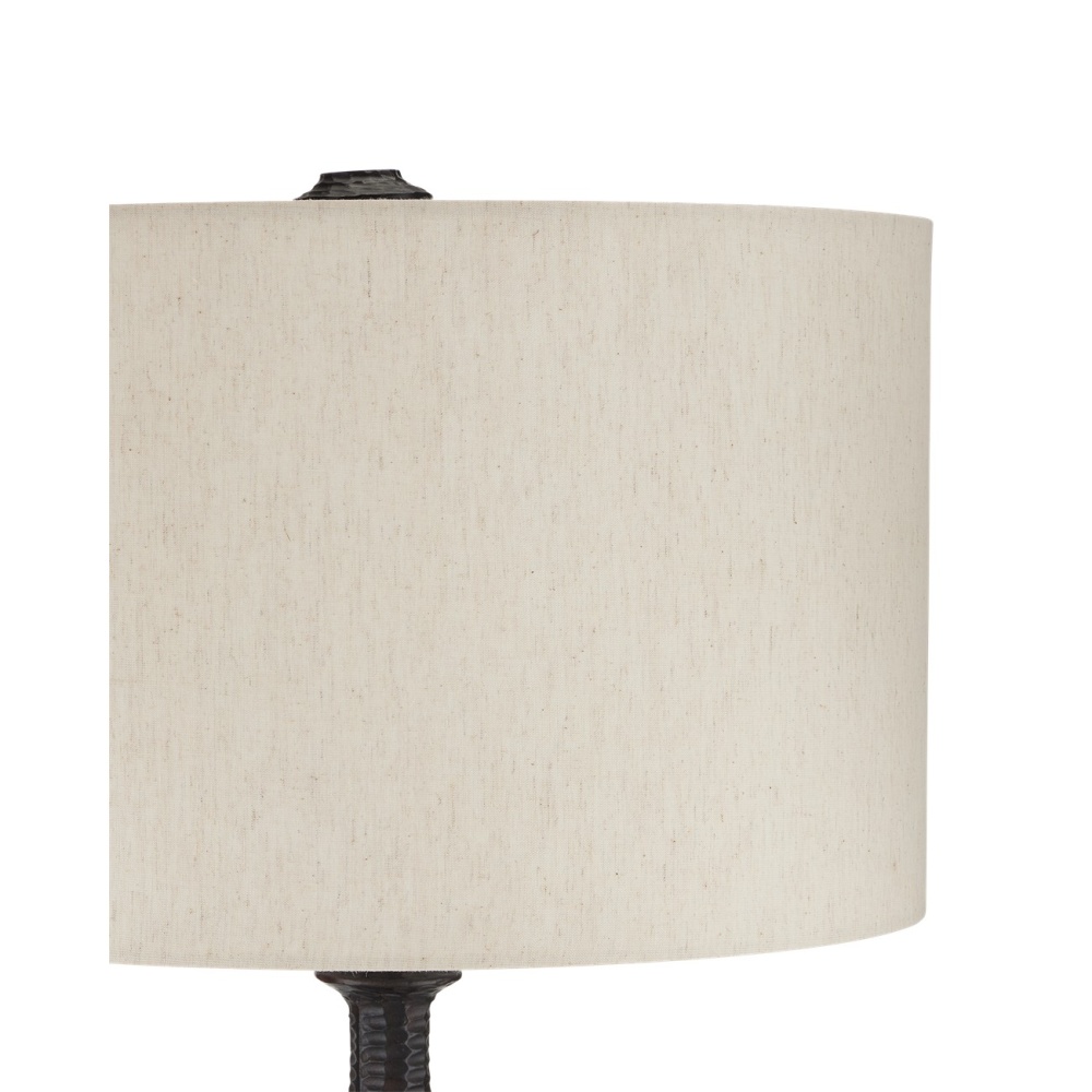 The Gallo Bronze Floor Lamp is a clean and simple design with a casted texture that is further accented by the bronze finish, which highlights the character in the material. The bronze lamp, which will infuse a room with a chic vibe, introduces style without too heavy a profile. The floor lamp is topped with a natural linen shade.