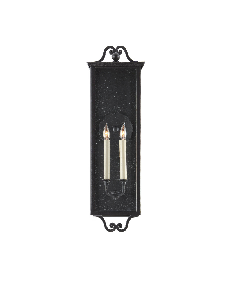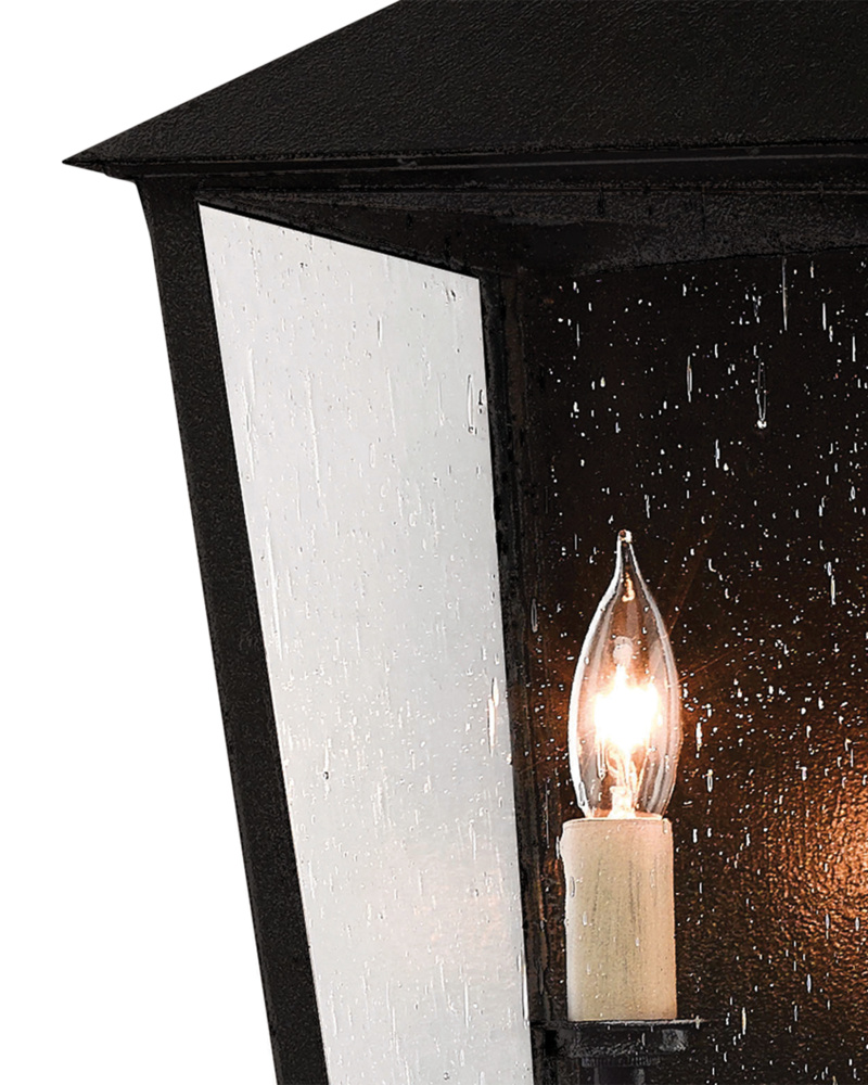 The medium version of the Giatti Outdoor Wall Sconce is one of twelve fixtures in our Twelfth Street collection of outdoor lighting that features a Trilux finish, the next generation of high-performance, weather-resistant finishing technology brought to the market exclusively by Currey & Company. The coating provides three levels of protection, and is fade resistant, crack resistant and rust resistant. We guarantee the finishes applied to our Twelfth Street pieces for five years. The metal on this sconce in the collection has been treated to our midnight finish that surrounds seeded-glass panes that turn the illumination to a soft glow.