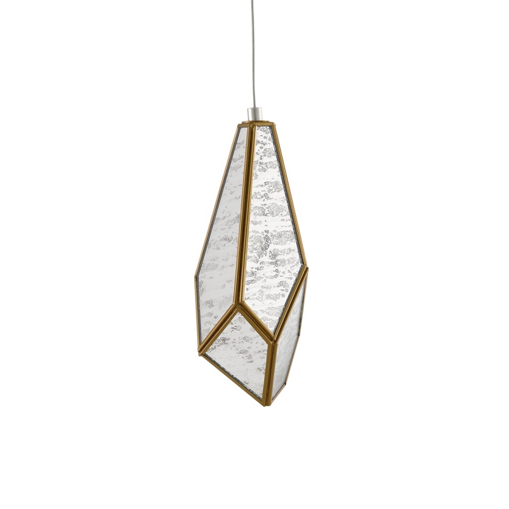 The faceted shades of the Glace 3-Light Multi-Drop Pendant are made of panes of Raj mirror joined with seams of metal in a brass finish. The organic shape of the shades and the fact they hang at differing heights brings this mirrored pendant added personality that will make it a piece of jewelry in a space. The canopy of this piece is luminous in a painted silver finish. This fixture is among Currey & Company's multi-drop pendant collection, which includes multiple configurations.