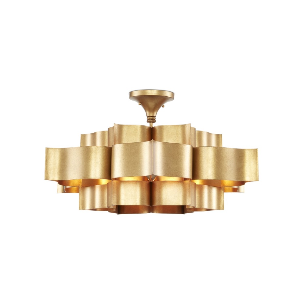 The gold version of the Grand Lotus Chandelier receives its majestic good looks from a combination of stunning workmanship and an antique gold leaf finish. Skillfully fashioned from wrought iron, the fixture is a gorgeous interpretation of the blossom upon which Asian deities are known to pose. The six-light chandelier measures 30 inches in diameter and is adjustable in height. We also offer this fixture, which is one of several fixtures in the Grand Lotus collection, in a contemporary silver leaf finish.