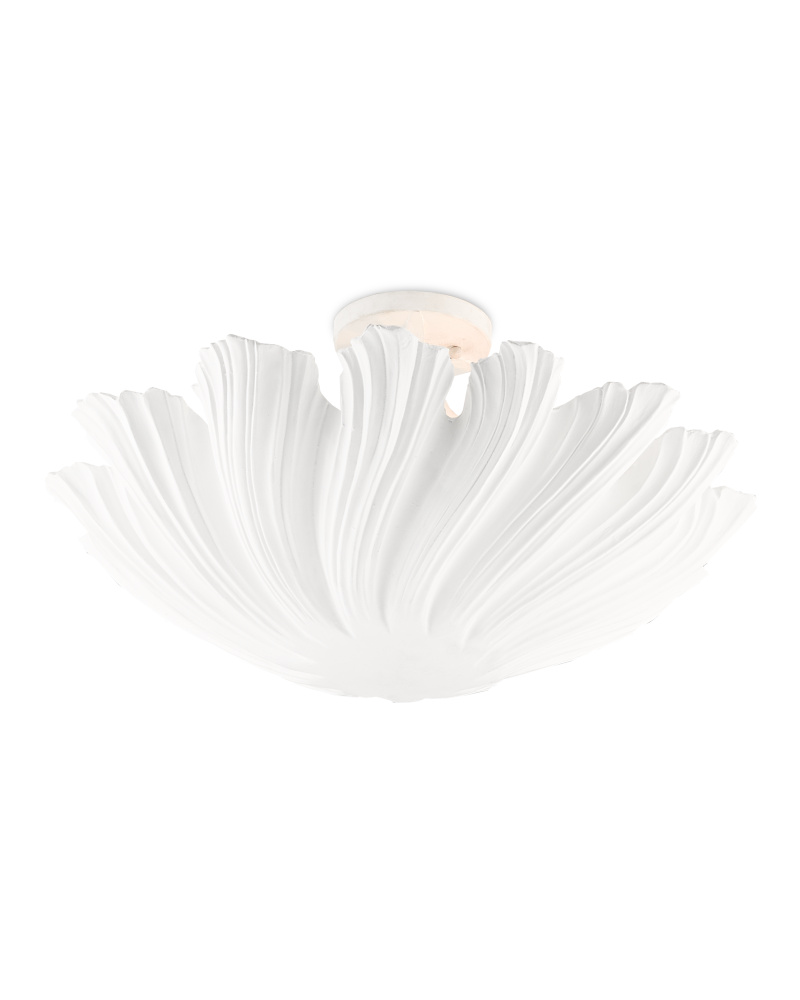Our Hadley Semi-Flush is made of wrought iron and composite in a gesso white finish to look like a tassel. The white semi-flush with its striated bell shape is beautifully feminine.