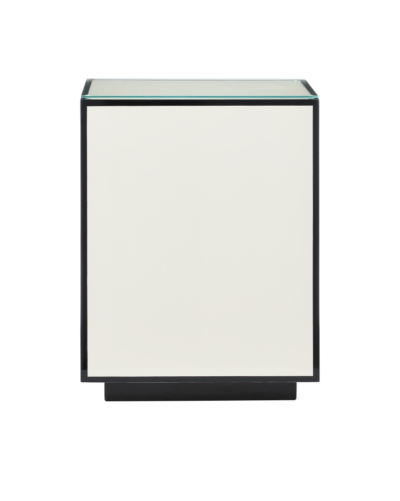 Nothing beats the sheen of lacquer where decorative elements are concerned, as is evident in the sleek surfaces of the Ivory Lacquer Side Table. Made of wood, the accent table has been covered in the time-honored process that has been valued in interior design for so long. The pale ivory surfaces are rimmed in rich black, and the top is fitted with a square of tempered glass. The plinth base is a design feature of note.