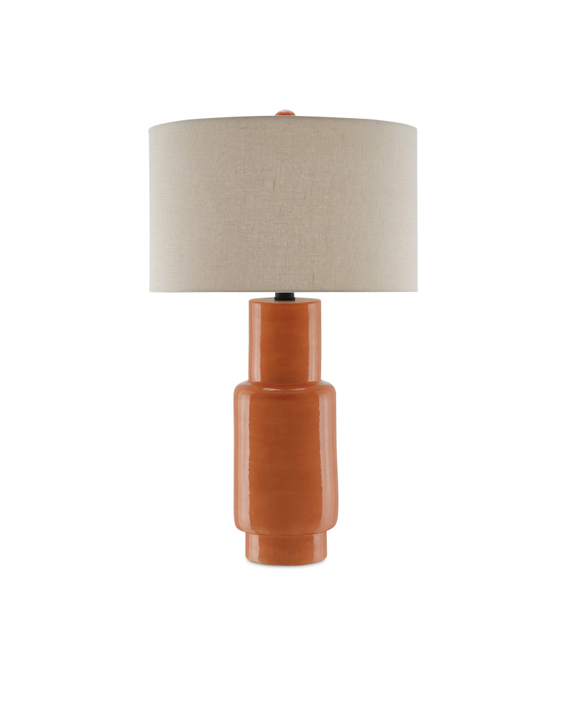 The orange version of the Janeen Table Lamp is a throwback to the 1960s when design was groovy and our cultural mores were tripping the light fantastic! The terracotta lamp, which stands 31 inches tall, has been treated to a vibrant orange finish. The metal hardware has a satin black finish and the lamp is topped with a flax linen drum shade that illuminates this nod to kicky pottery of the past. We offer the Janeen in a number of colors.