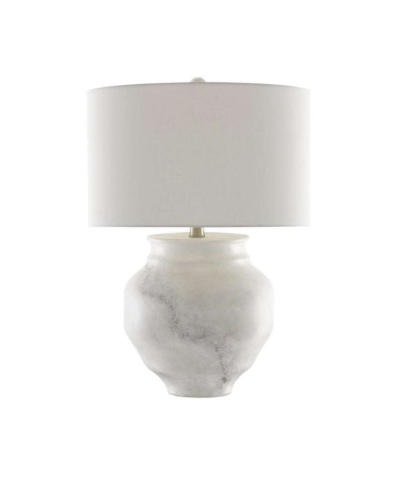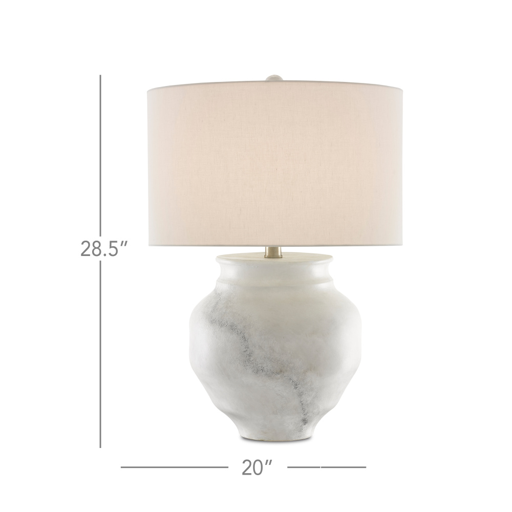 The Kalossi Table Lamp has a surface with a marble-like feel, though it is made of terracotta. The subtle patterning on the white lamp has been painstakingly applied by our artisans. The Kalossi is topped with an off-white shantung shade.