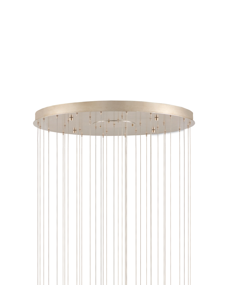 The Lazio 36-Light Multi-Drop Pendant has luminous shades carved from natural alabaster. The veining in the material makes each shade unique because each stone taken from the earth will have its own personality. The canopy of this piece is luminous in a painted silver finish. This fixture is among Currey & Company's multi-drop pendant collection, which includes multiple configurations.
