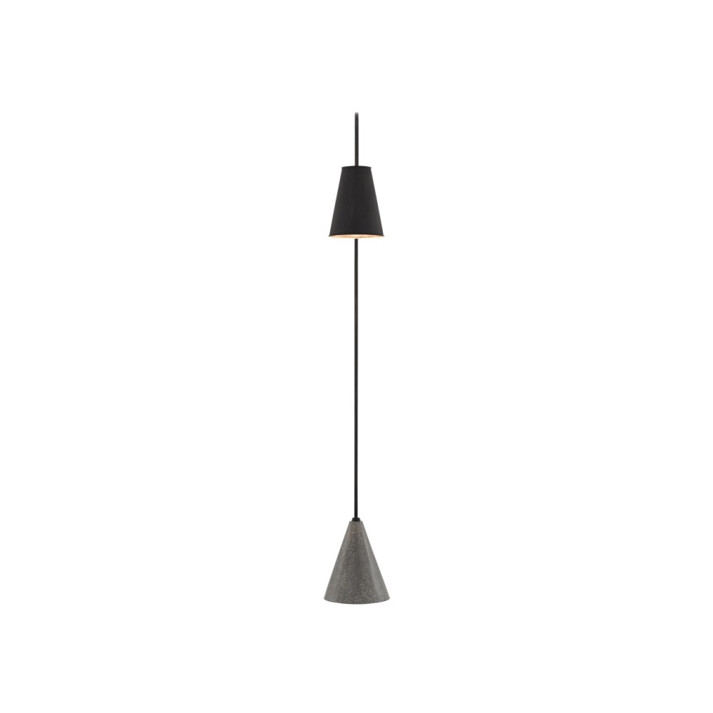 The most common of materials were used to form the Lotz Floor Lamp. The shepherd’s crook-shaped stem and the shade are made of wrought iron that we have treated to a black iron finish, and the weighty base is made of polished concrete. But this industrial chic floor lamp has a refined design note that brings its illumination greater brilliance: the interior of the shade is covered in a silver leaf finish.