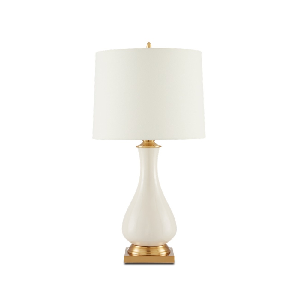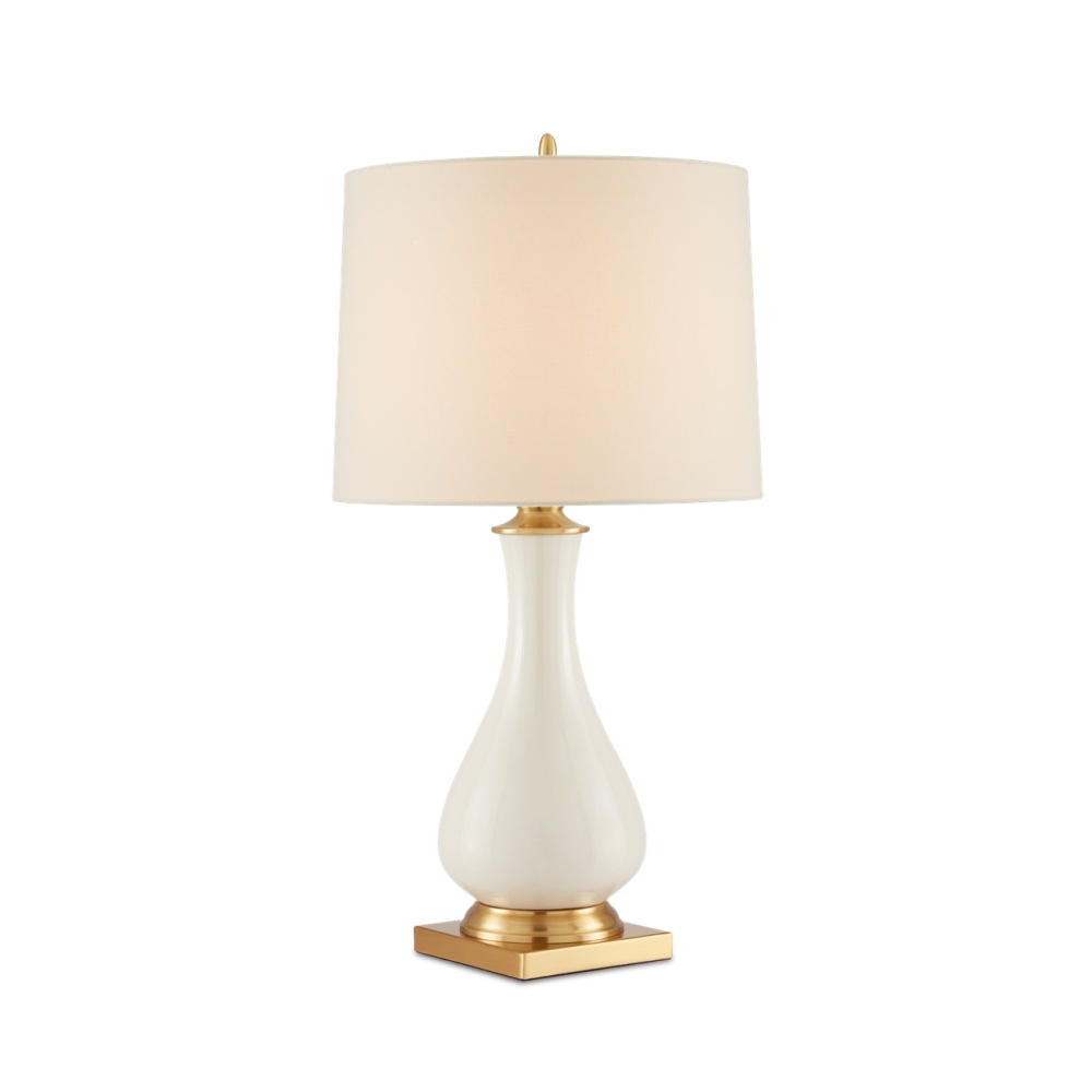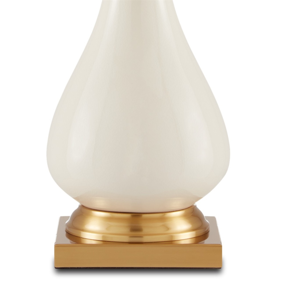 This modernized version of a classically styled ceramic lamp has a cream crackle finish that adds a touch of historical resonance to the Lynton Table Lamp. The warm glow of the brass mountings and coordinating finial contrast the body and the off-white linen shade to bring this 31-inch tall lamp the ability to be right at home in the traditional or transitional décor.