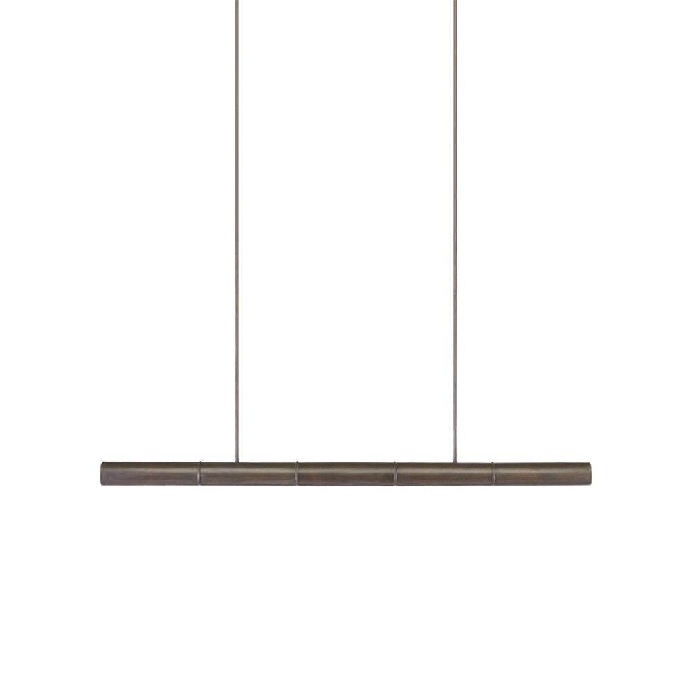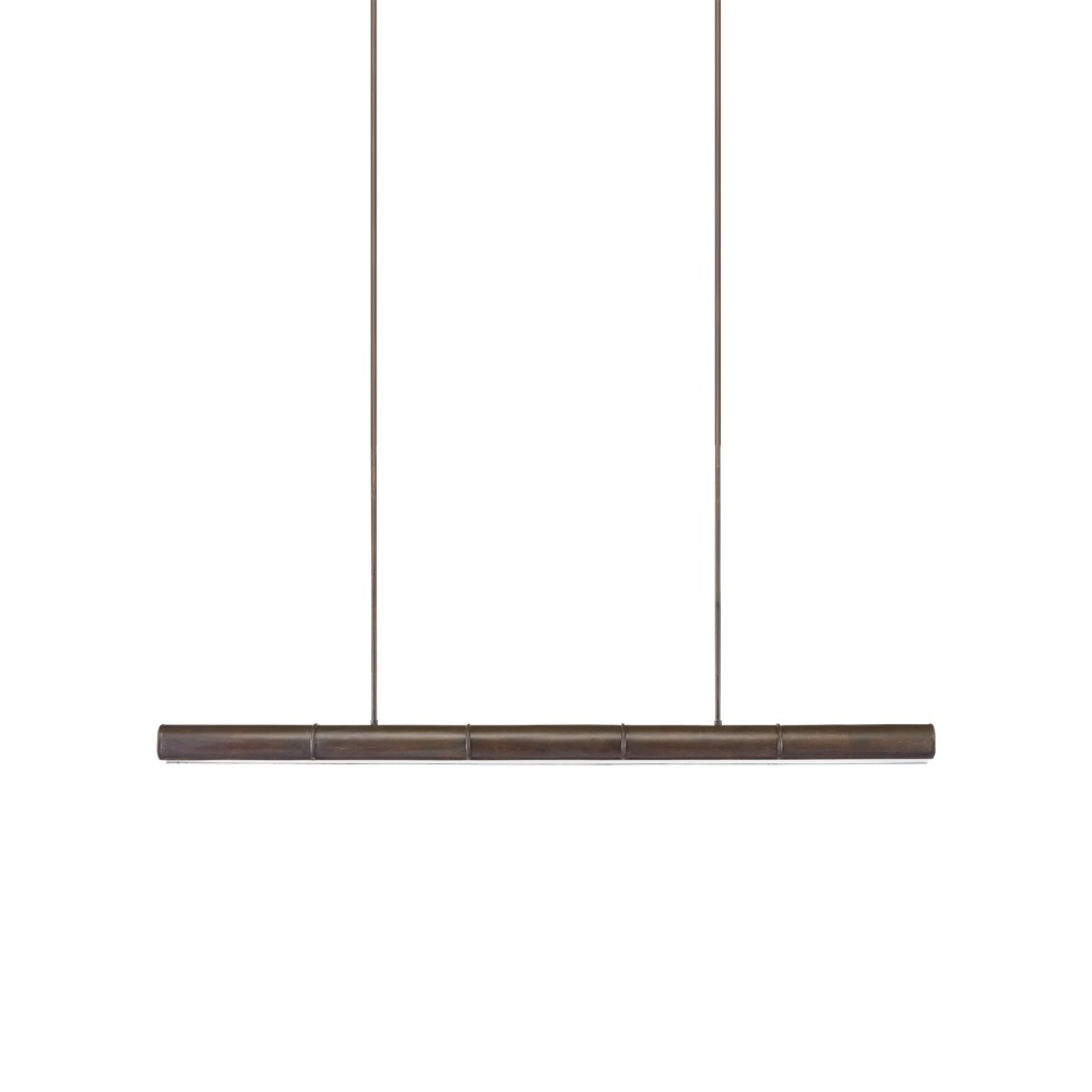 The Lyon Linear Large Chandelier is a handsome long chandelier designed to illuminate kitchen islands and bars. The bronze verdigris finish brings the metal serious warmth, which is contrasted by the white acrylic diffuser that softens the light. This bronzed chandelier would be perfect over a pool table or in a game room, and the fixture is dimmable and fitted with integrated LED technology. Adjustable from 10.5" to 52.5" with use of included chain/rod kit/cable. If your space calls for a longer drop, additional chain/rods/cable is available for purchase.