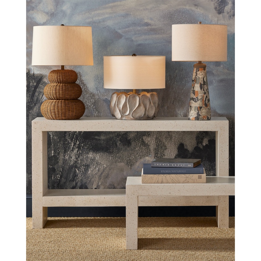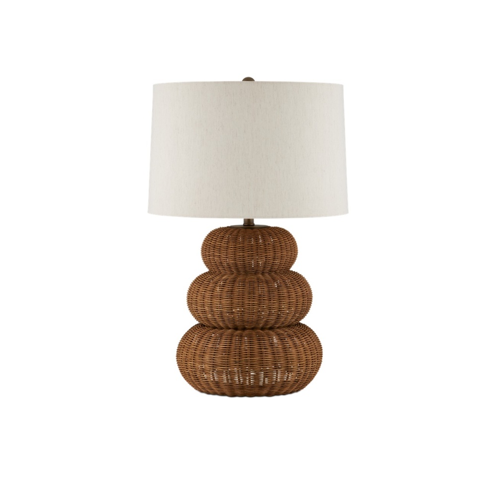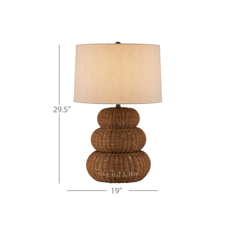 Nothing says texture in a space better than woven natural materials. The Mabrouka Table Lamp brings it in spades. Made of rattan, the triple-gourd shape of the lamp's body and the dark brown finish that adds warmth to the natural material enliven the personality of the brown lamp. The hardware and finial in an antique brass finish read as perfectly in-sync with the color of the wicker weave.