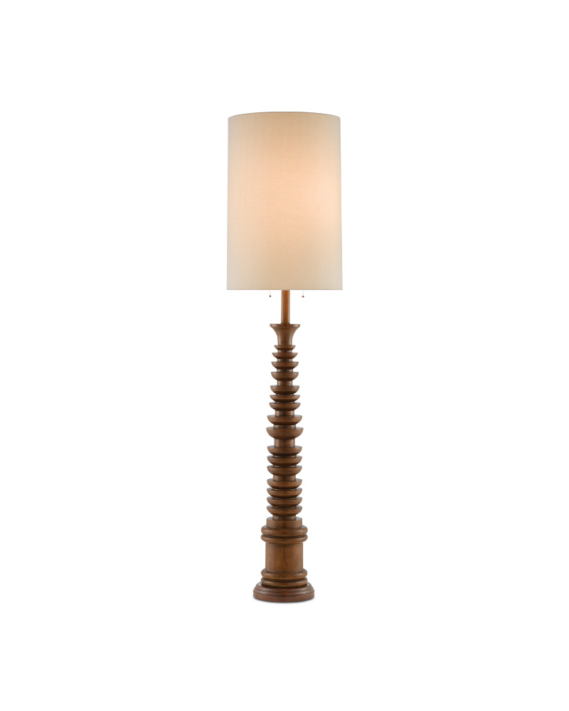 Rising like a temple spire on a mountainside in a faraway land, our Malayan Floor Lamp has the elemental flair that gives master woodworkers bragging rights. The fluted stem, made of rubber wood, exudes warmth to make this floor lamp a knock-out in interiors with vintage, mid-century modern or ethnic-inspired styles. No surprise it was originally designed by Phyllis Morris. The tall, thin light eggshell linen shade we’ve placed atop this composition makes it all the more commanding.