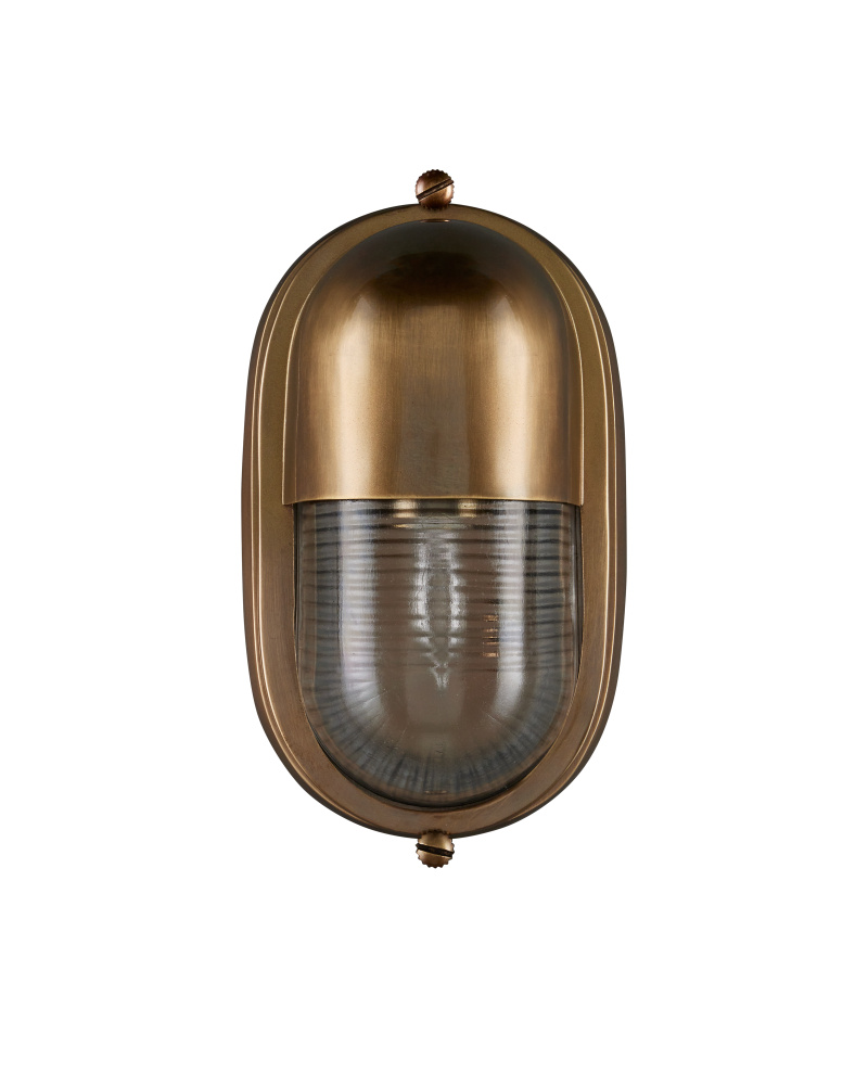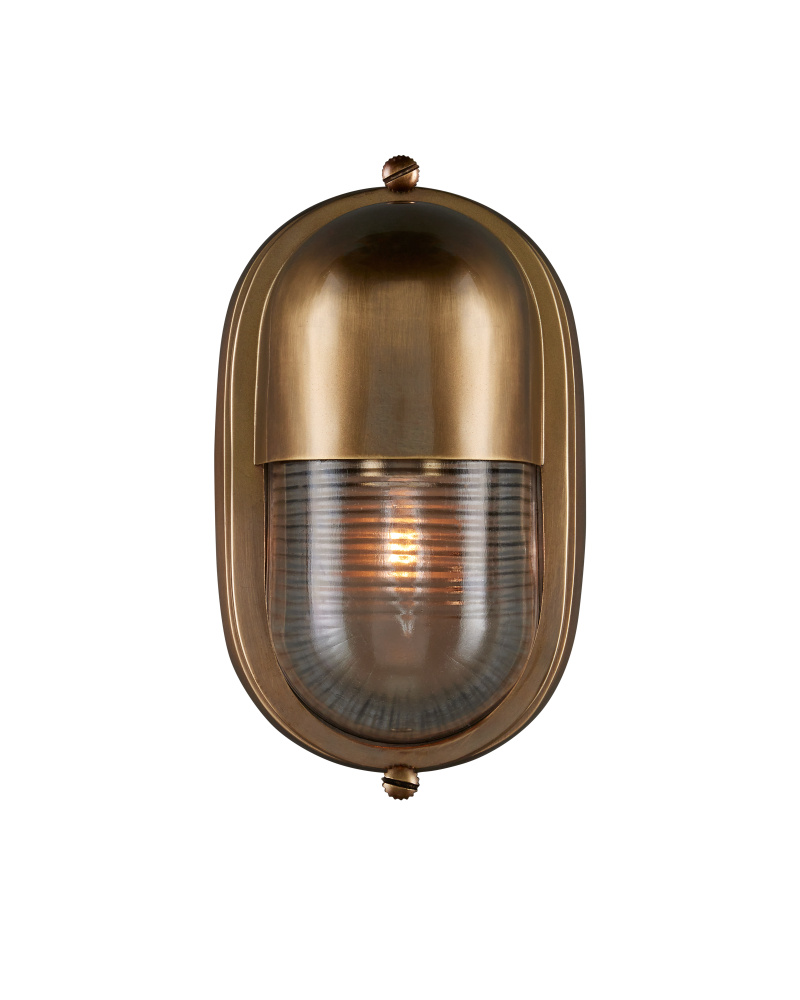 The Maritime Brass Outdoor Wall Sconce has its sea legs, so to speak, given it has the quintessential design attributes that have sailed the oceans for centuries. The antique brass body holds the ribbed glass shade in place. This gold outdoor sconce is a perfect choice for coastal environments given its stylistic notes harken to luxury yachts and schooners.