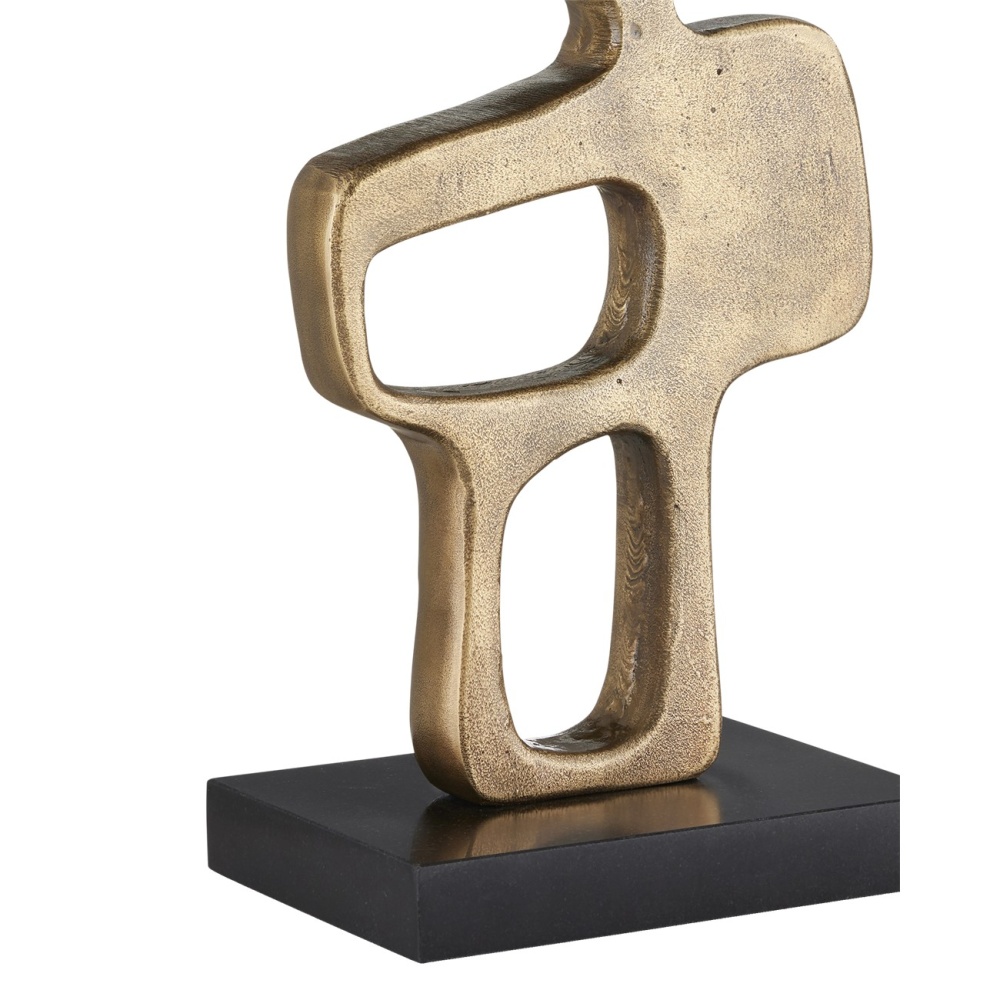 The Mithra Brass Table Lamp features a powerful brutalist profile. The cast aluminum lamp showcases the unique attributes of foundry pieces, such as the drifts of stippling on the metal's surface. The antique brass finish highlights the texture, giving the gold lamp the feel of a vintage piece. Inspired by a mid-century modern sculpture, the design is complemented by a honed granite base and an off-white shantung shade, which serve as clean-lined elements that allow the sculptural form to take center stage.
