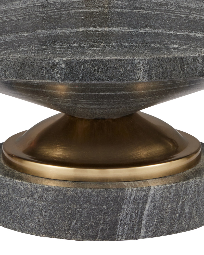 Made of natural travertine, the Niobe Table Lamp has a whimsical profile created by the graduating stacked balls that rise from a disc base of the same material. The texture of the beige lamp is enhanced by the flecks in the flax linen shade. Because this beige lamp is made of natural stone, texture and color may vary from lamp to lamp.