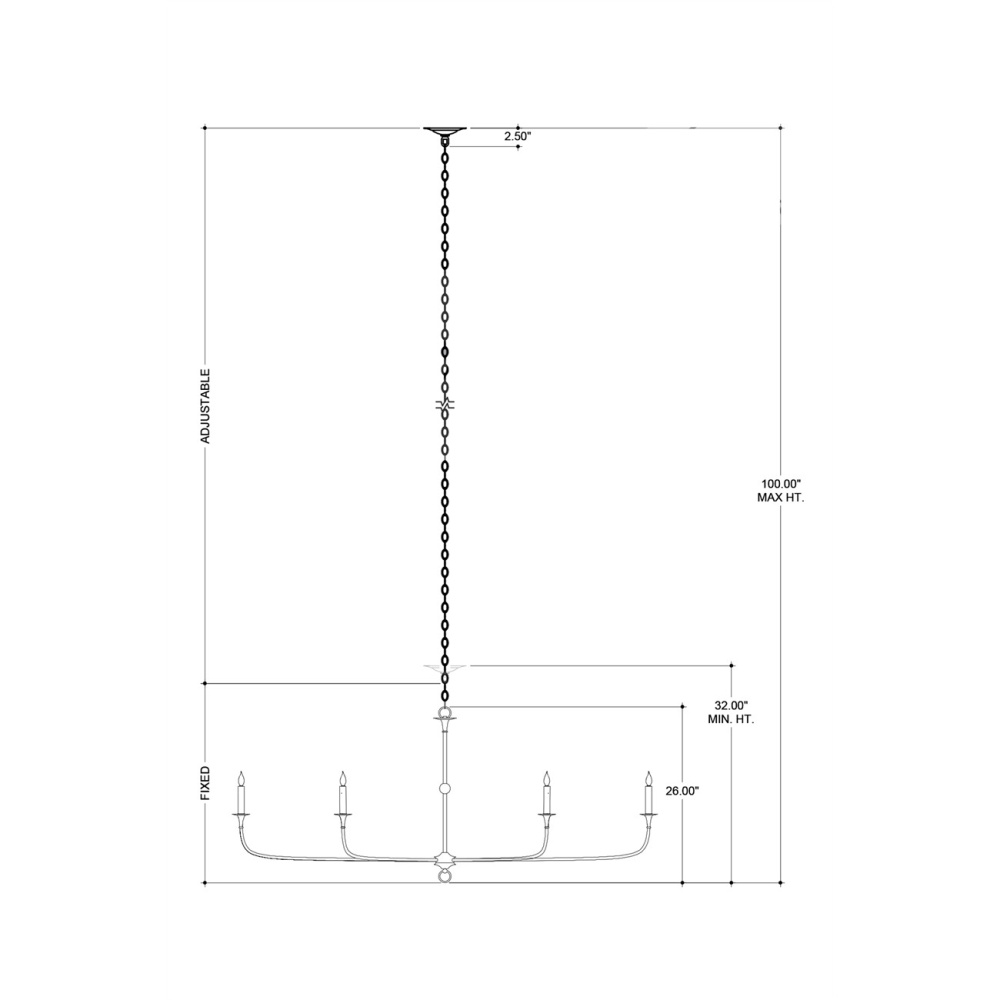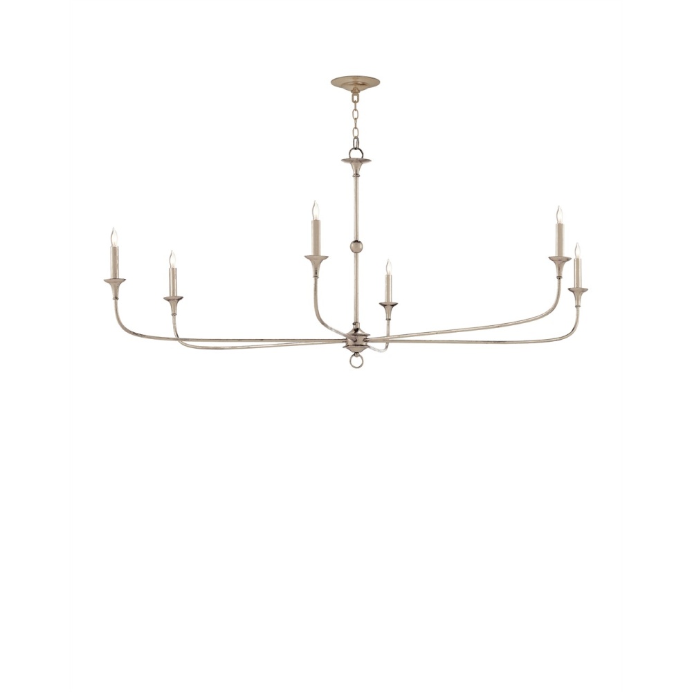 The arms of the Nottaway Silver Large Chandelier stretch gracefully from a petite cog that rests at the bottom of its stem, ornamented with a dainty ring. Though this is a seriously minimalist fixture, the profile of the silver chandelier has a lovely fluidity to it that makes it a natural choice for traditional and transitional interiors. The champagne finish on the wrought iron frame adds textural interest. Adjustable from 29" to 99" with use of included chain/rod kit/cable. If your space calls for a longer drop, additional chain/rods/cable is available for purchase.