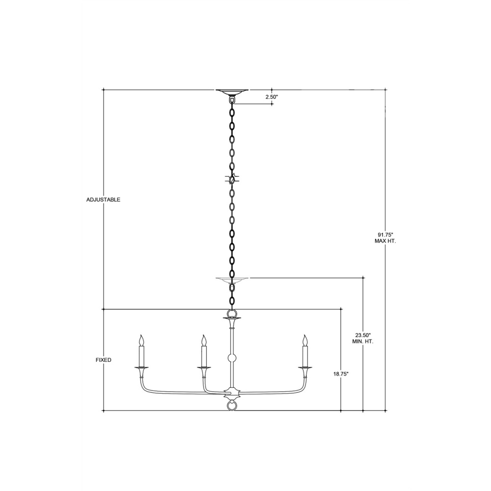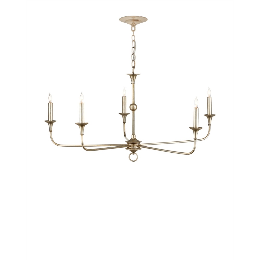The arms of the Nottaway Silver Small Chandelier stretch gracefully from a petite cog that rests at the bottom of its stem, ornamented with a dainty ring. Though this is a seriously minimalist fixture, the profile of the silver chandelier has a lovely fluidity to it that makes it a natural choice for traditional and transitional interiors. The champagne finish on the wrought iron frame adds textural interest. Adjustable from 23" to 92" with use of included chain/rod kit/cable. If your space calls for a longer drop, additional chain/rods/cable is available for purchase.
