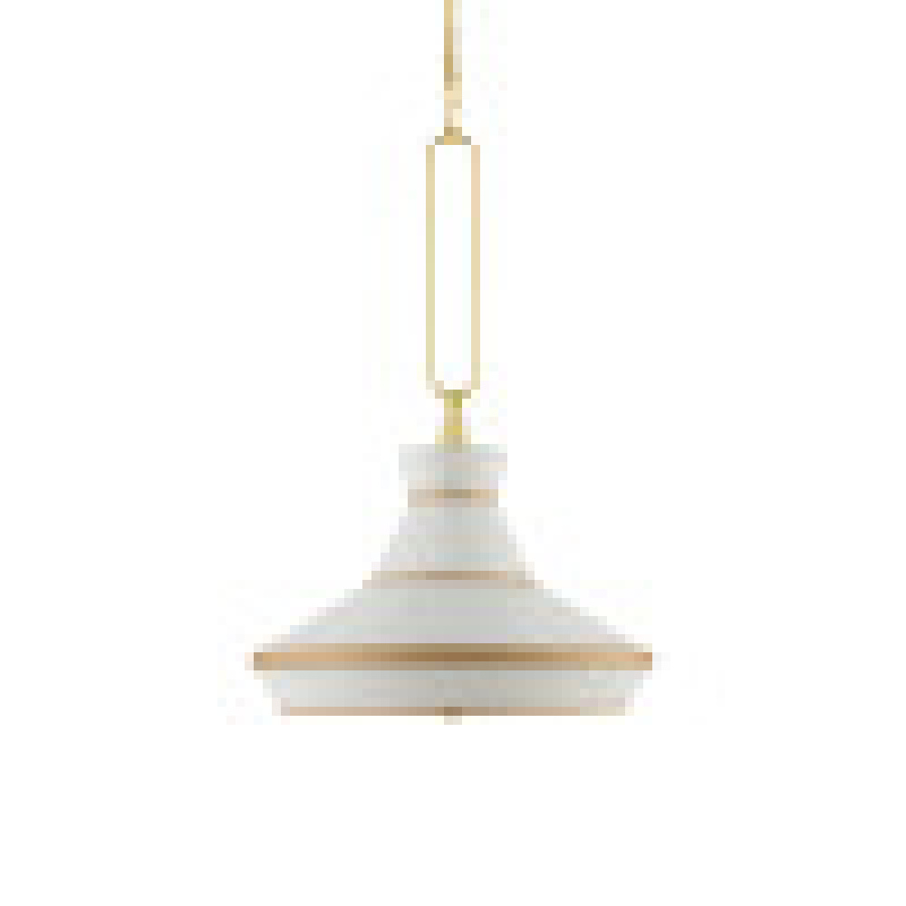 The Perth Pendant is made of metal in a mix of off-white and gold leaf finishes. This gold and off-white pendant offers a new twist on a traditional pendant with a drum shade. Notable design details include the decorative loop and the finessed elements linking to it, the gold trim on the shade, and the acrylic diffuser. Adjustable from 41.5" to 88" with use of included chain/rod kit/cable. If your space calls for a longer drop, additional chain/rods/cable is available for purchase.
