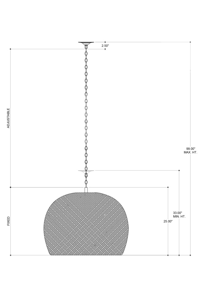 The Piero Black Large Chandelier may appear to be woven from a natural plant material but it is made of iron in a satin black finish to make it an exemplar of the skills that our craftspeople bring to their work. When the black chandelier is illuminated, textural patterns will enliven surrounding surfaces; when it is not, the flowing weave will continue to be a textural accent in a space. Adjustable from 33" to 99" with use of included chain/rod kit/cable. If your space calls for a longer drop, additional chain/rods/cable is available for purchase.