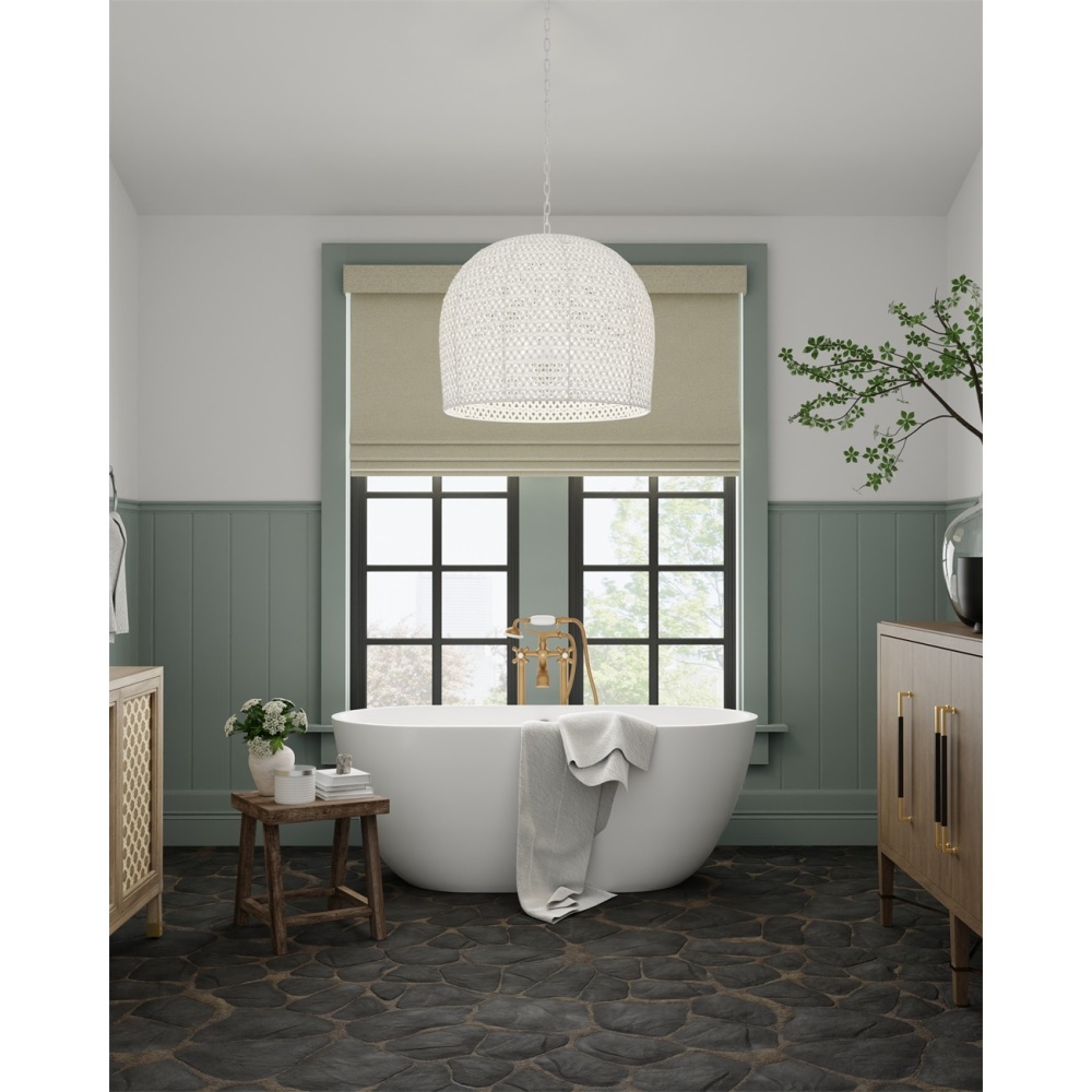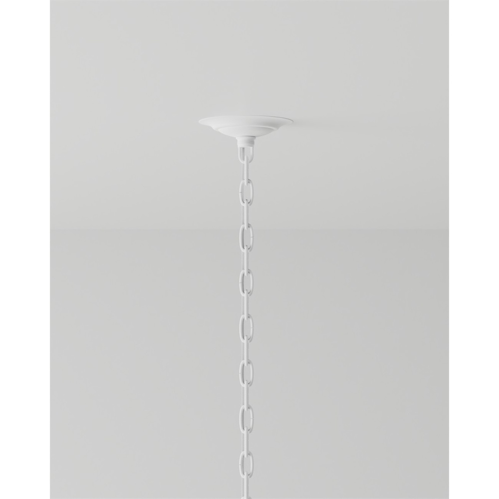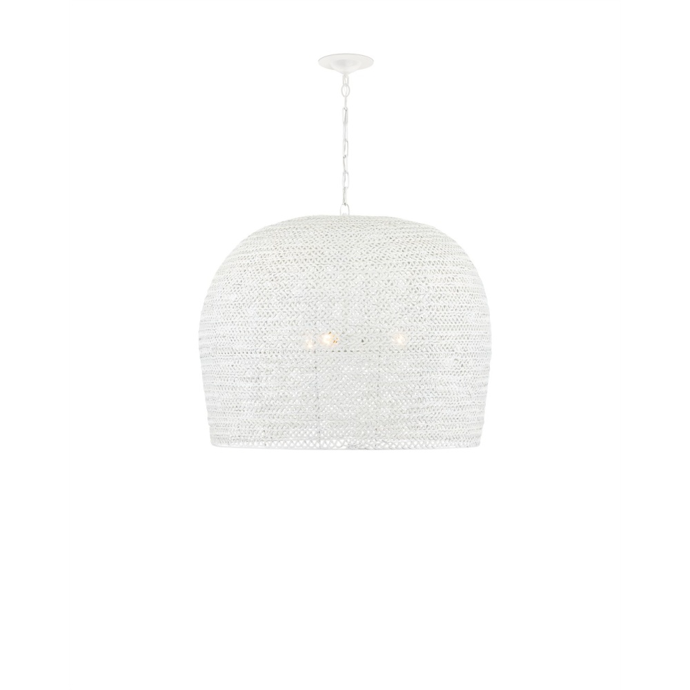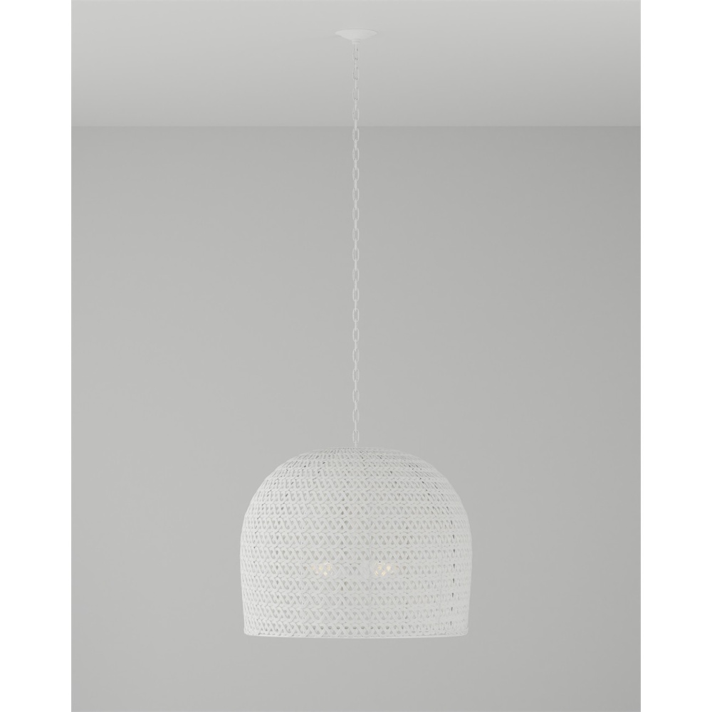 The Piero White Large Chandelier may appear to be woven from a natural plant material, but it is made of iron in a white finish to make it one of our offerings that illustrates the skills that our craftspeople bring to their work. When the white chandelier is illuminated, textural patterns will enliven surrounding surfaces. Adjustable from 29" to 99" with use of included chain/rod kit/cable. If your space calls for a longer drop, additional chain/rods/cable is available for purchase.