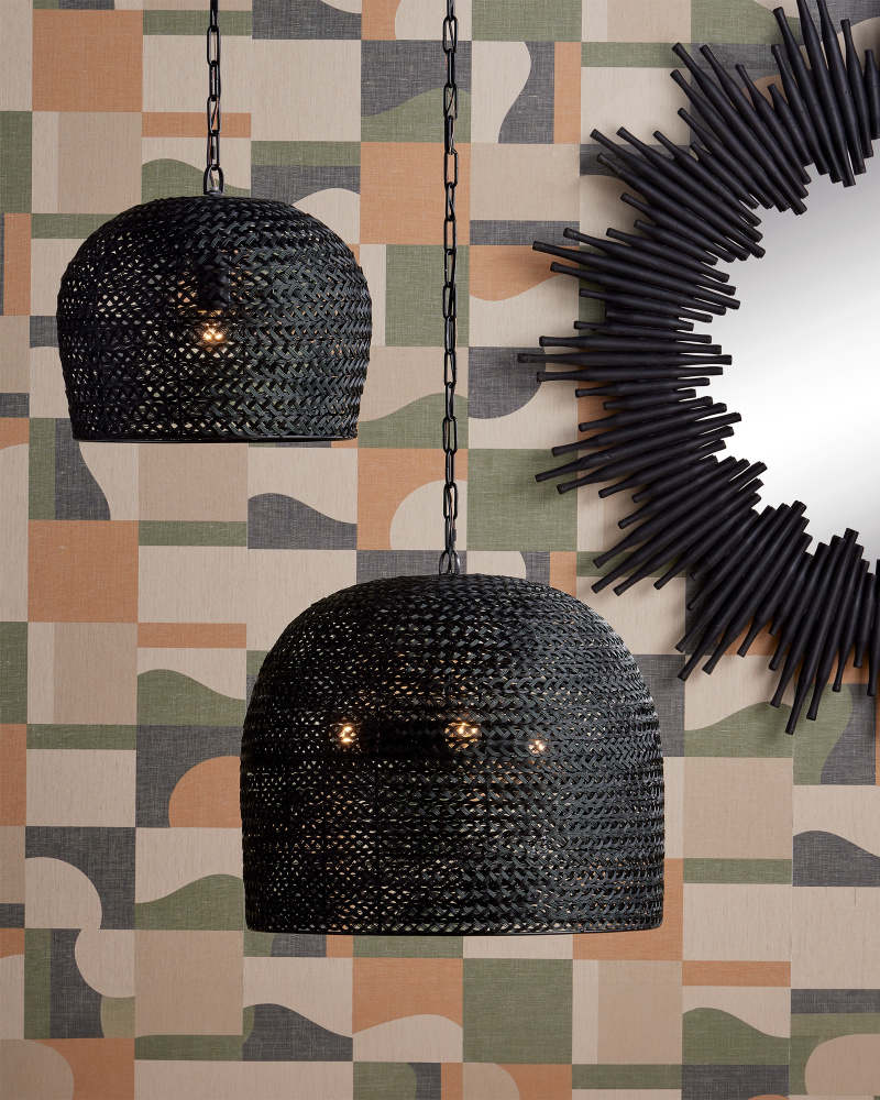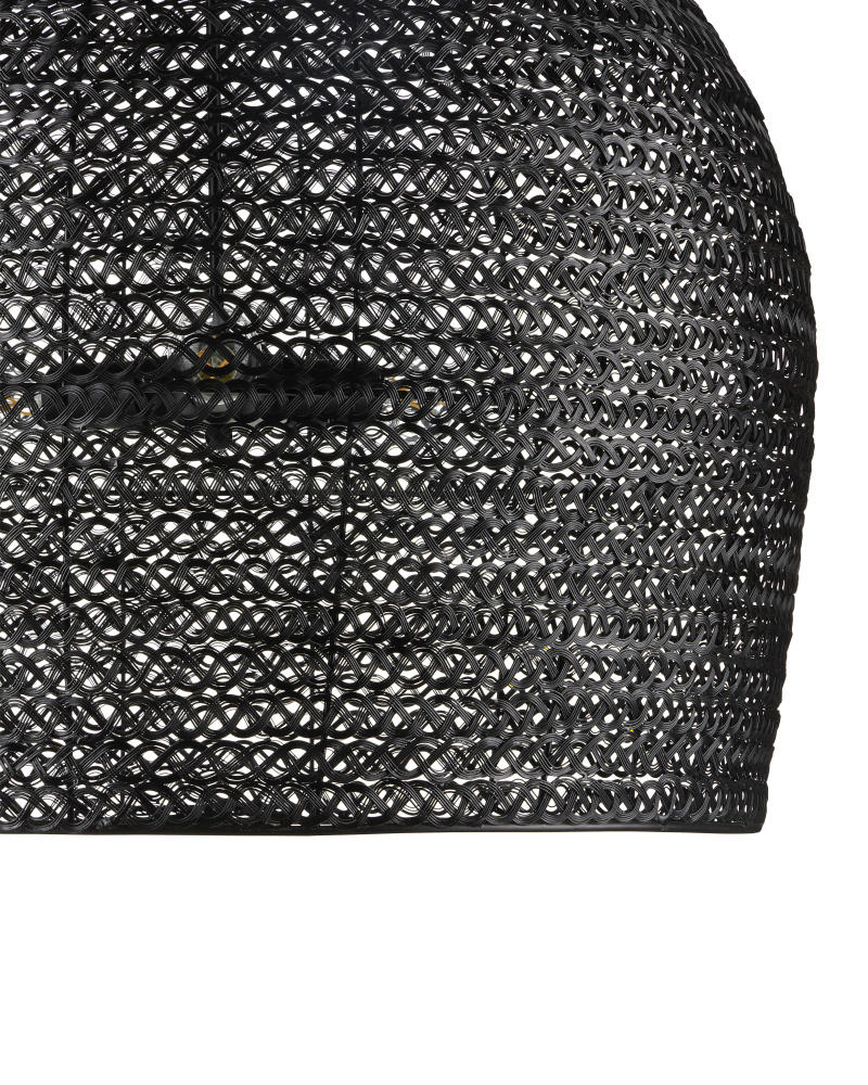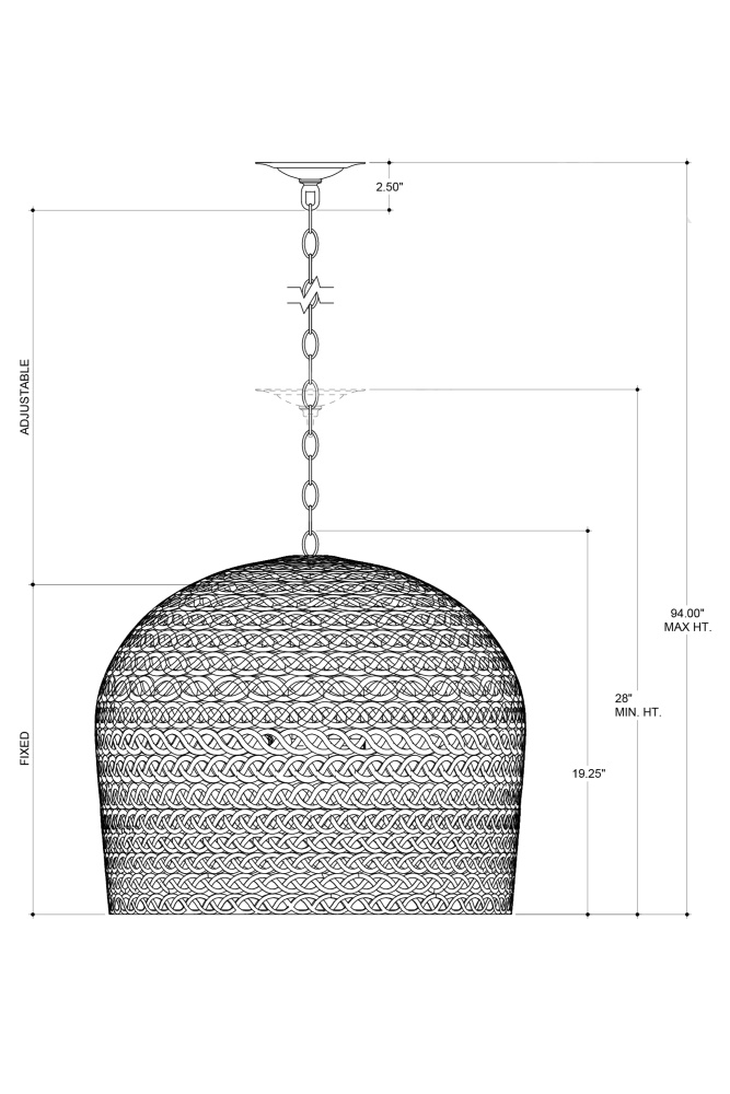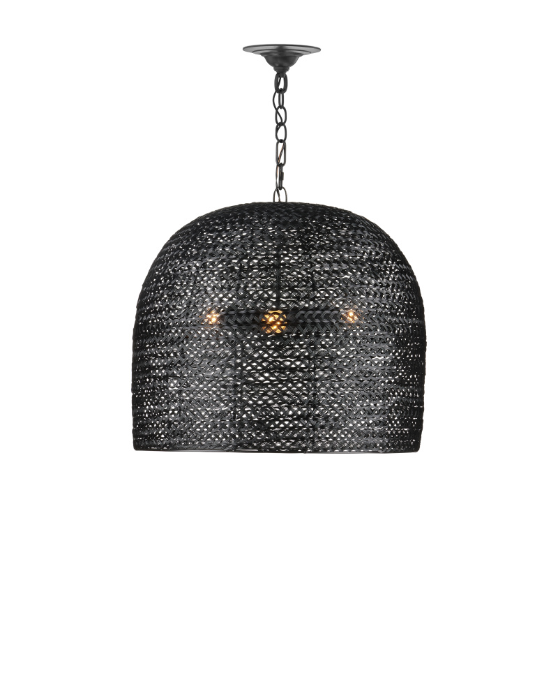 The Piero Medium Black Chandelier may appear to be woven from a natural plant material but it is made of iron in a satin black finish to make it an exemplar of the skills that our craftspeople bring to their work. When the black chandelier is illuminated, textural patterns will enliven surrounding surfaces; when it is not, the flowing weave will continue to be a textural accent in a space. Adjustable from 24.25" to 94" with use of included chain/rod kit/cable. If your space calls for a longer drop, additional chain/rods/cable is available for purchase.