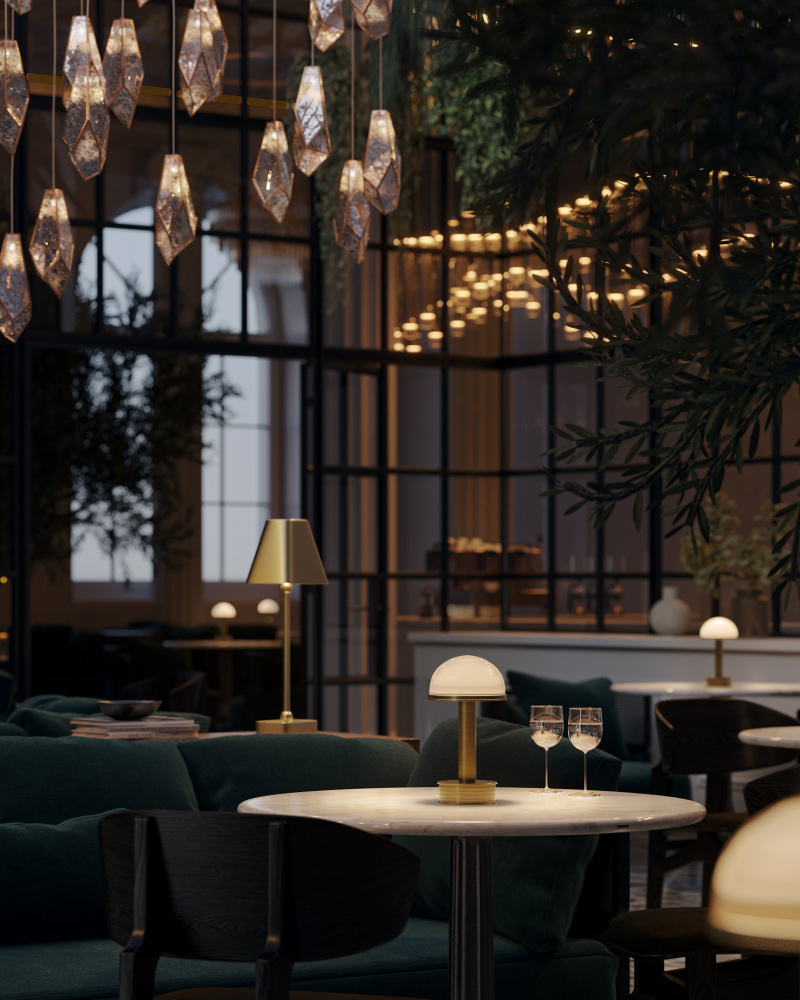 The Promenade Brass Cordless Table Lamp will wander with you wherever you need an ambient light source. At just 10 inches high, the gold lamp glows in a polished brass finish with a glossy white glass cap. The on and off button is on the side of the base, as is the battery-life indication light that alerts when it is time to recharge. This little lamp is a stylish choice when the ultimate freedom of a cordless lamp is desired.