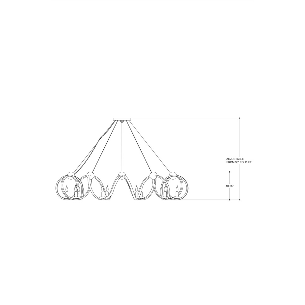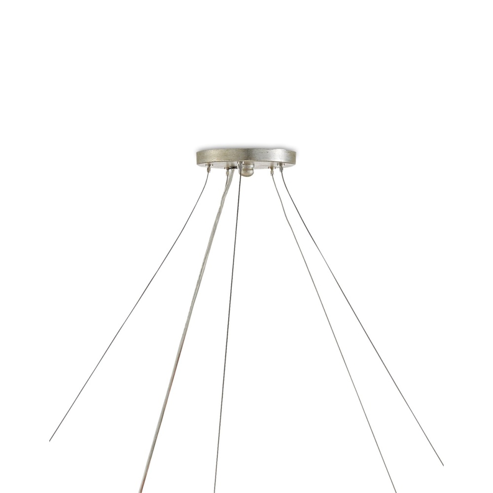 The Ringmaster Silver Chandelier is cold-forged and requires a team of strong men to achieve its stellar design. The contemporary silver leaf finish and ten lights provide the ultimate in illumination emanating from the undulant fixture. Adjustable from 30" to 132" with use of included chain/rod kit/cable. If your space calls for a longer drop, additional chain/rods/cable is available for purchase.