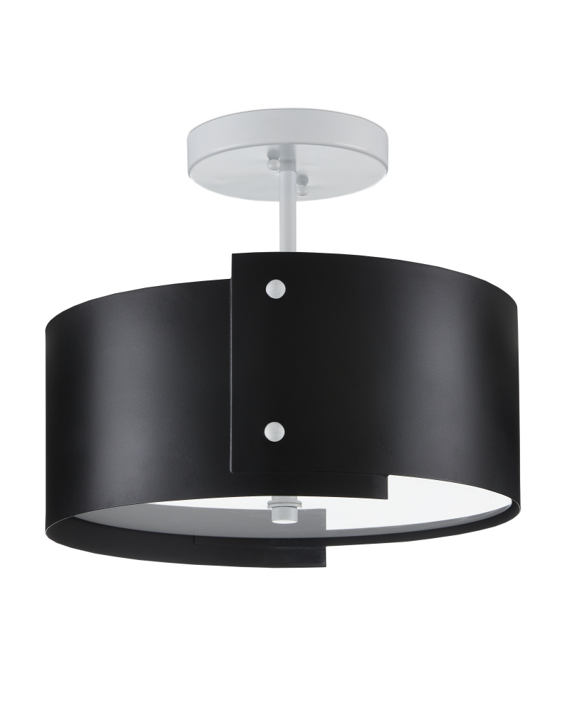 Inspired by Japanese origami, the Ritsu Black Semi-Flush is wrapped in wrought iron panels in a blacksmith finish, fastened with brads that are contrasting elements in sugar white. These match the finial that holds the acrylic diffuser in place and the ceiling plate, the pops of paleness bringing sophistication to this design. The Ritsu is fitted with integrated LED technology.