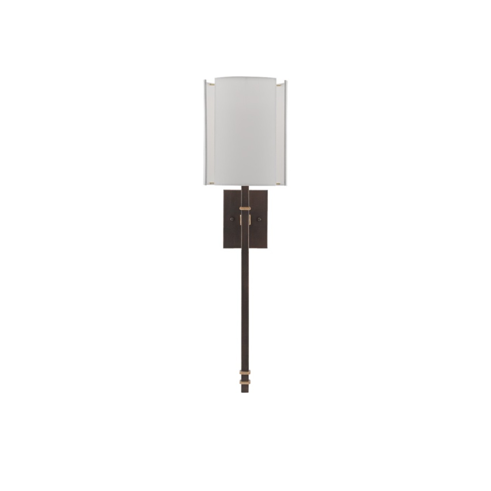Made of wrought iron in a mix of hand-rubbed bronze and contemporary gold leaf finishes, our Rocher Wall Sconce has gold accents that were subtly designed and dexterously placed. A layered off-white shantung shade heightens the chic appeal of this bronze sconce.